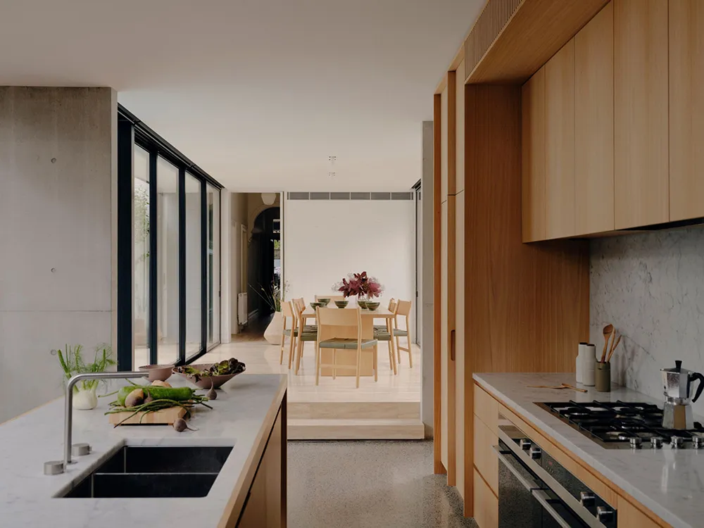 Murs en béton et décoration douce : maison à Melbourne