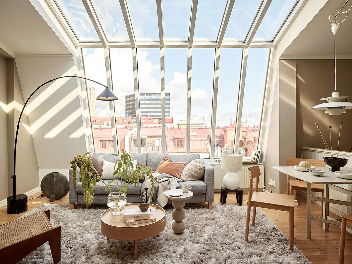 Fenêtre de mansarde luxueuse dans le design d'une appartement à deux étages à Gotenburg (83 m²)