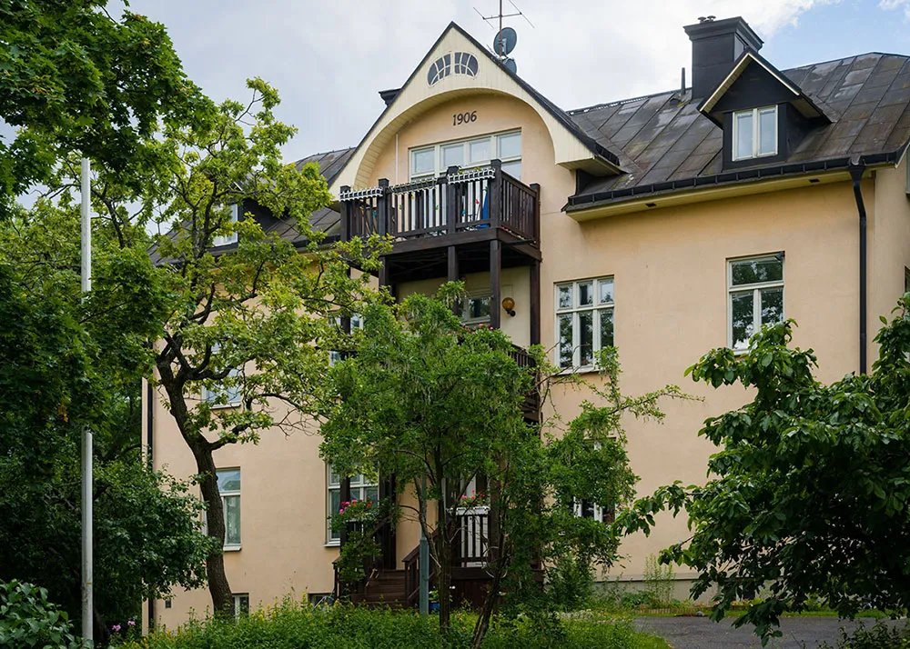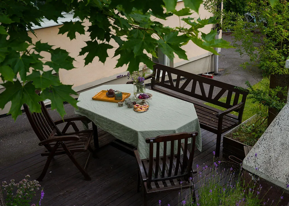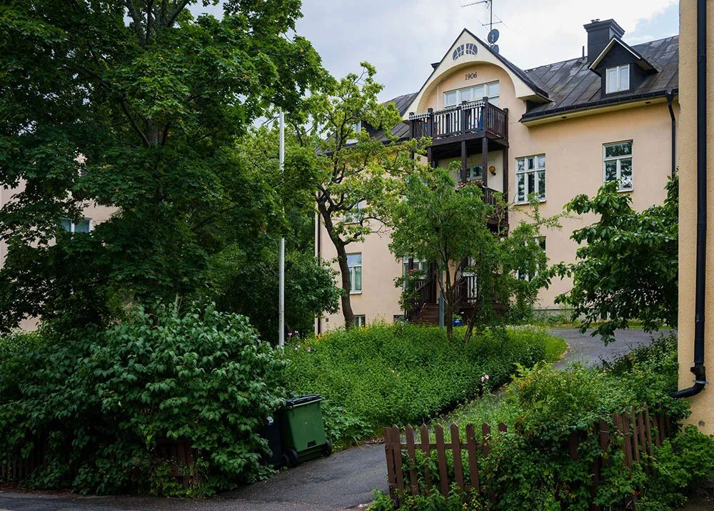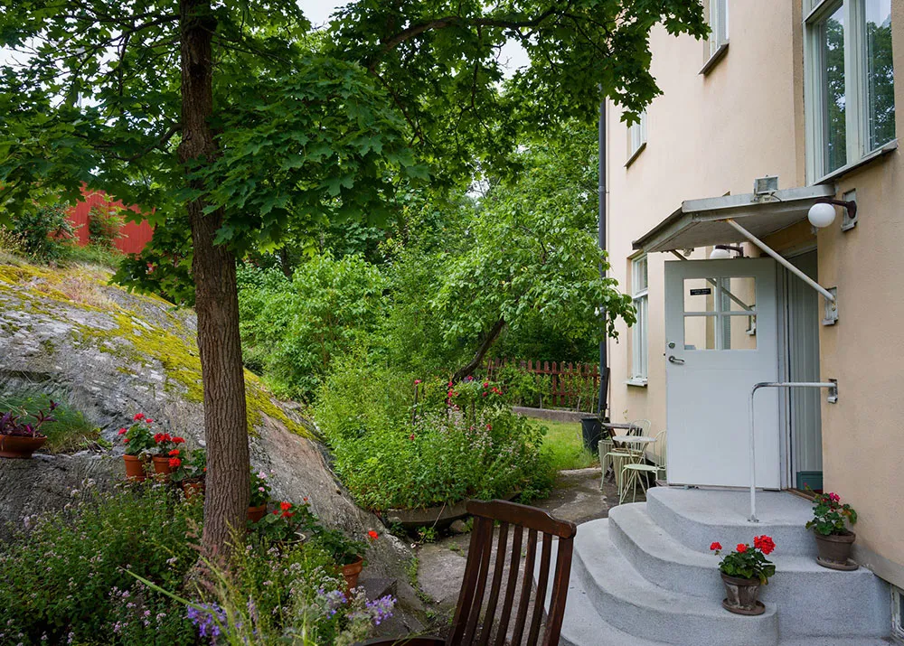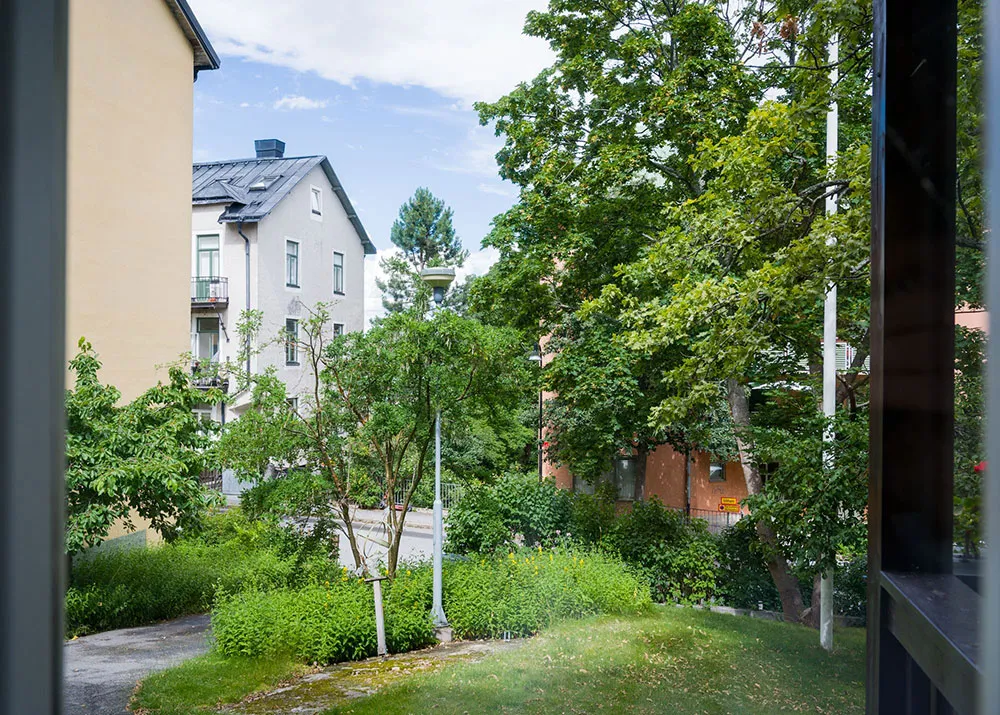 Le salon de cet petit appartement de deux pièces situé en périphérie de Stockholm ressemble à un morceau de chocolat : les murs brun foncé avec une bordure blanche sur les portes et fenêtres rappellent véritablement la tablette de chocolat au lait.