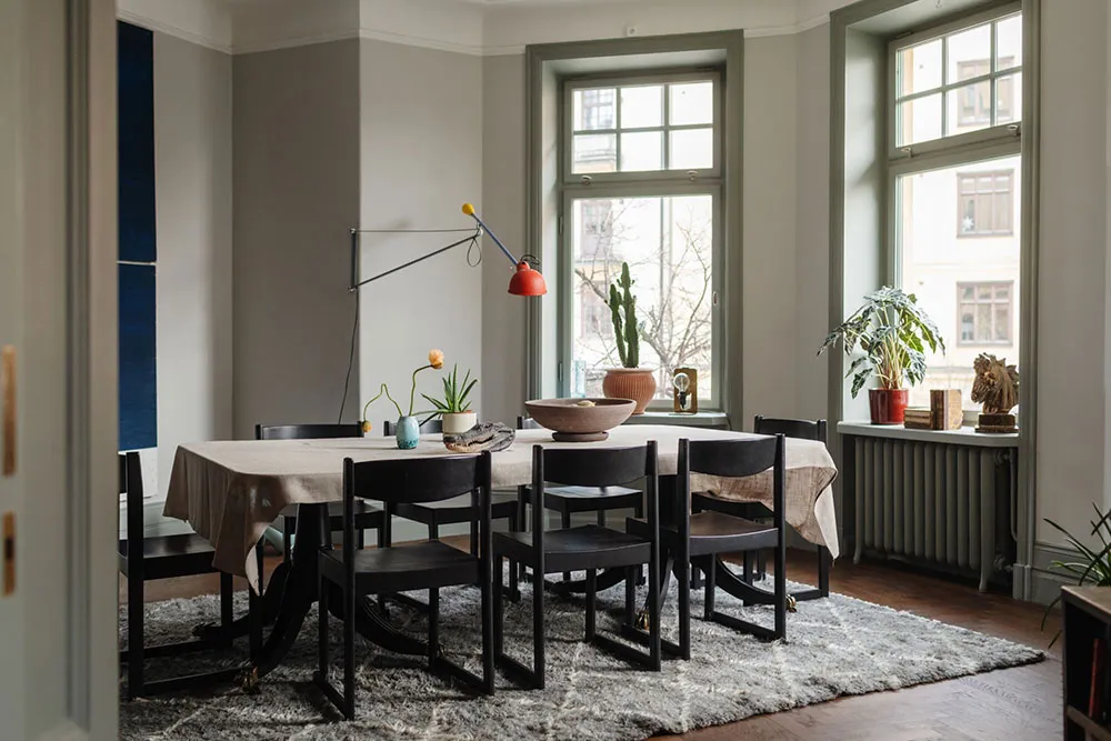 Cette vaste appartement dans un ancien bâtiment à Stockholm surprend par sa conception unique dans chaque pièce.
