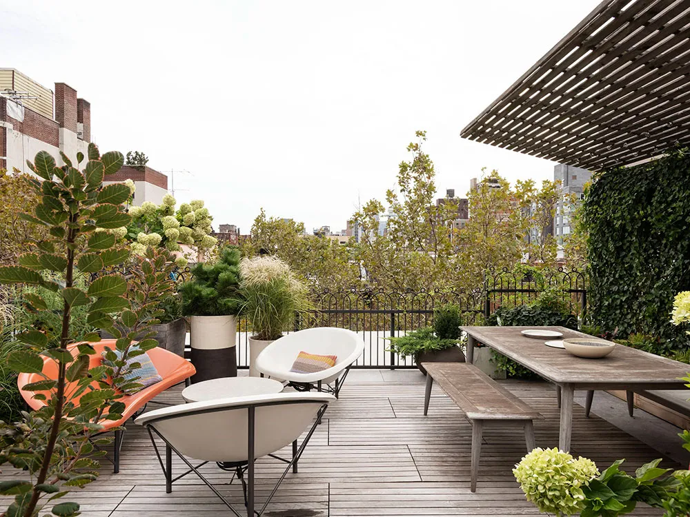 Magnifiques murs décoratifs et terrasse avec vue sur la ville : belles appartements à Manhattan
