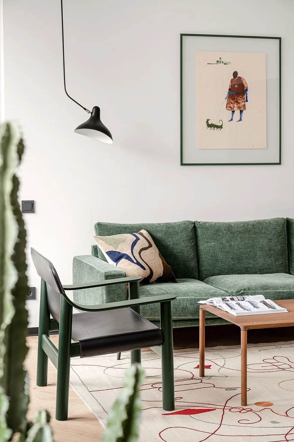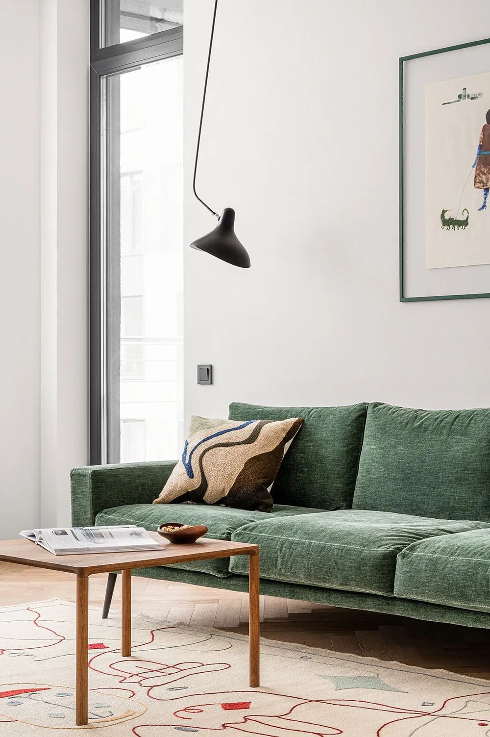 गर्म रंग एवं स्टाइलिश लाल सोफा: ओस्लो में एक आरामदायक अपार्टमेंट