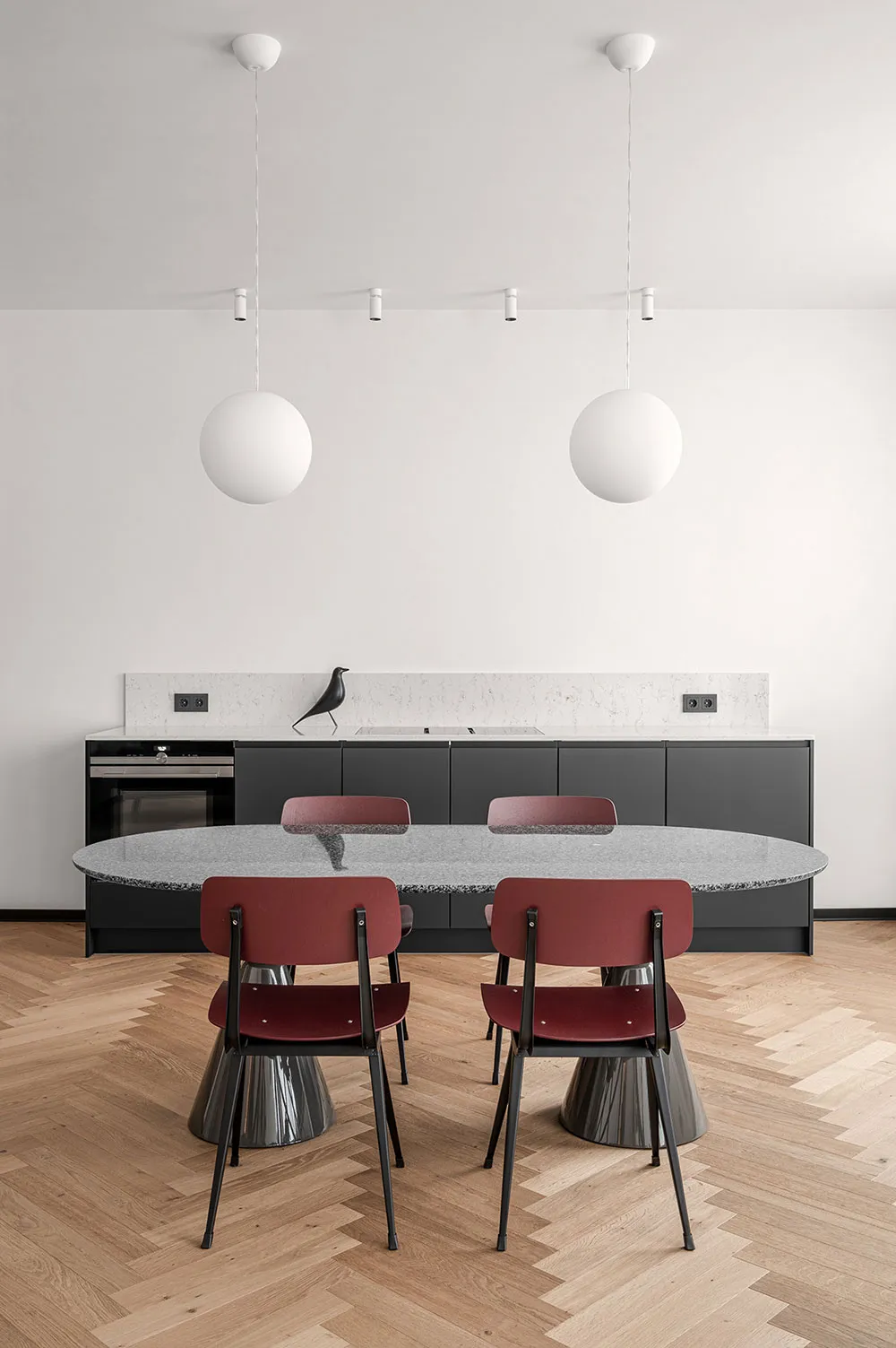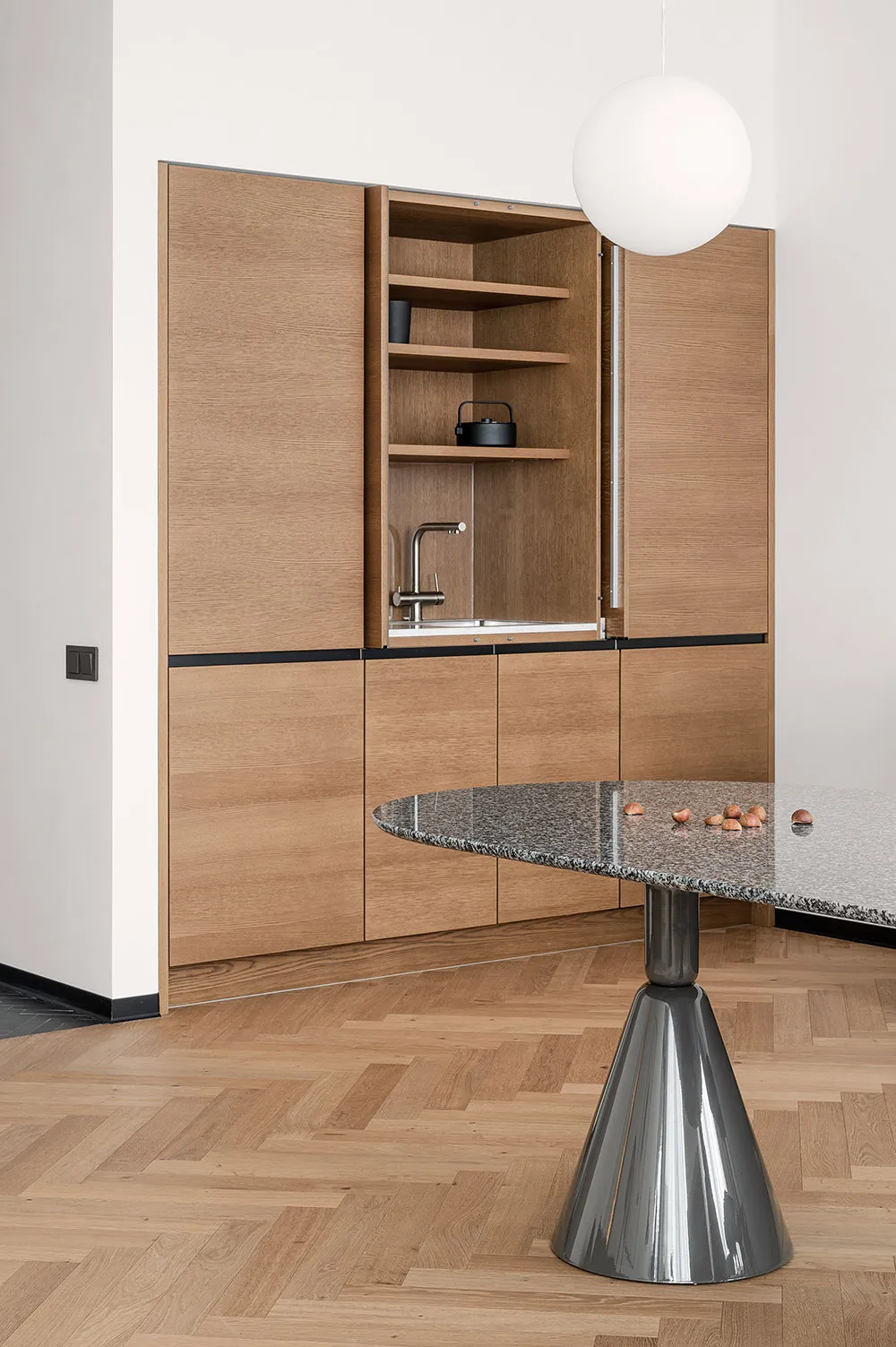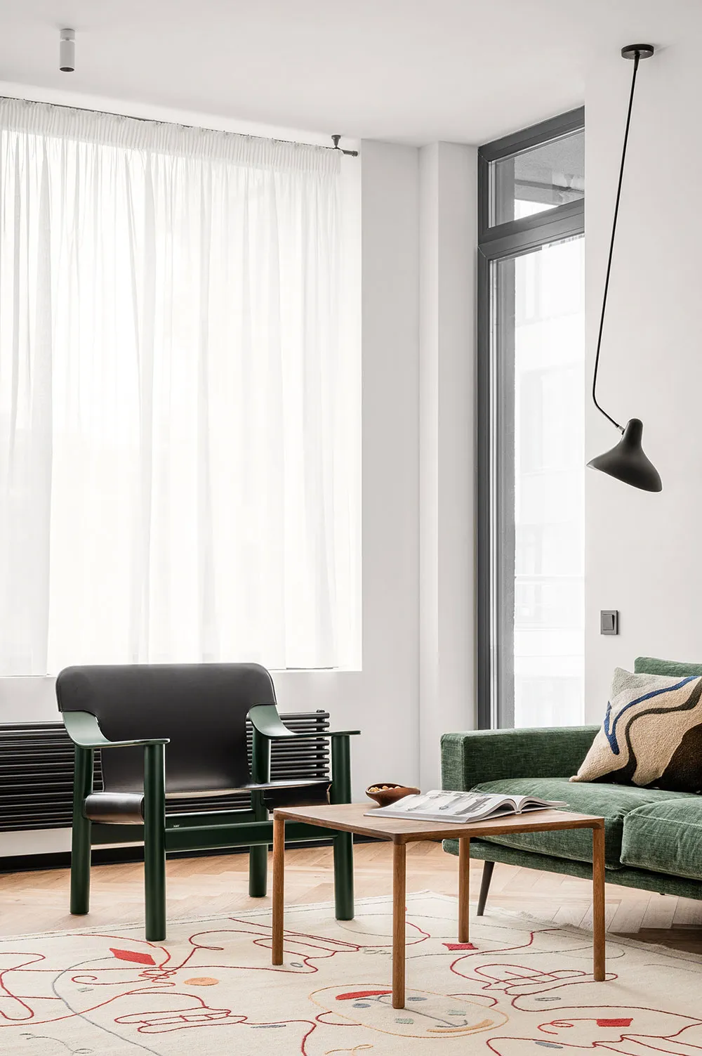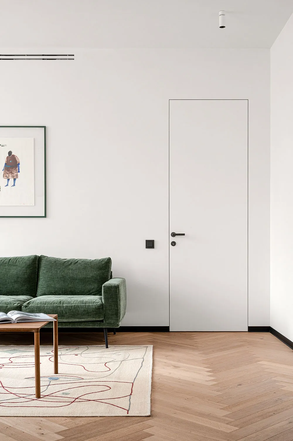 यह अपार्टमेंट, माजा बकलान की डिज़ाइन टीम द्वारा तैयार किया गया है; इसका डिज़ाइन सचेतन रूप से निष्पक्ष एवं मिनिमलिस्टिक है। मालिकों की योजना इसे किराए पर देने की थी, इसलिए यह आवश्यक था कि डिज़ाइन में कोई अत्यधिक आकर्षक या विवादास्पद तत्व न हों।