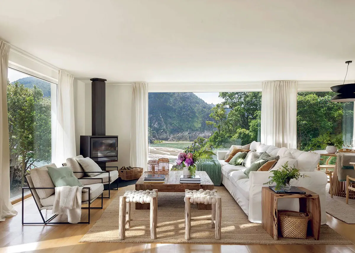 पहाड़ी ढलान पर स्थित एक सुंदर स्कैंडिनेवियन कॉटेज, जिसके अंदरूनी हिस्से बहुत ही स्टाइलिश हैं।