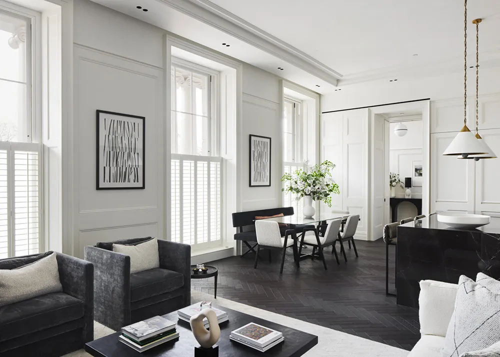 लंदन की सबसे सुंदर इमारतों में से एक में, बगीचे के नजारों वाले लक्जरी अपार्टमेंट