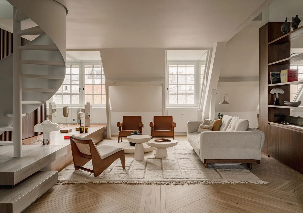 एक और पेरिस… छत के नीचे स्थित यह आकर्षक अपार्टमेंट, आधुनिक एवं स्टाइलिश डिज़ाइन का उत्कृष्ट उदाहरण है.