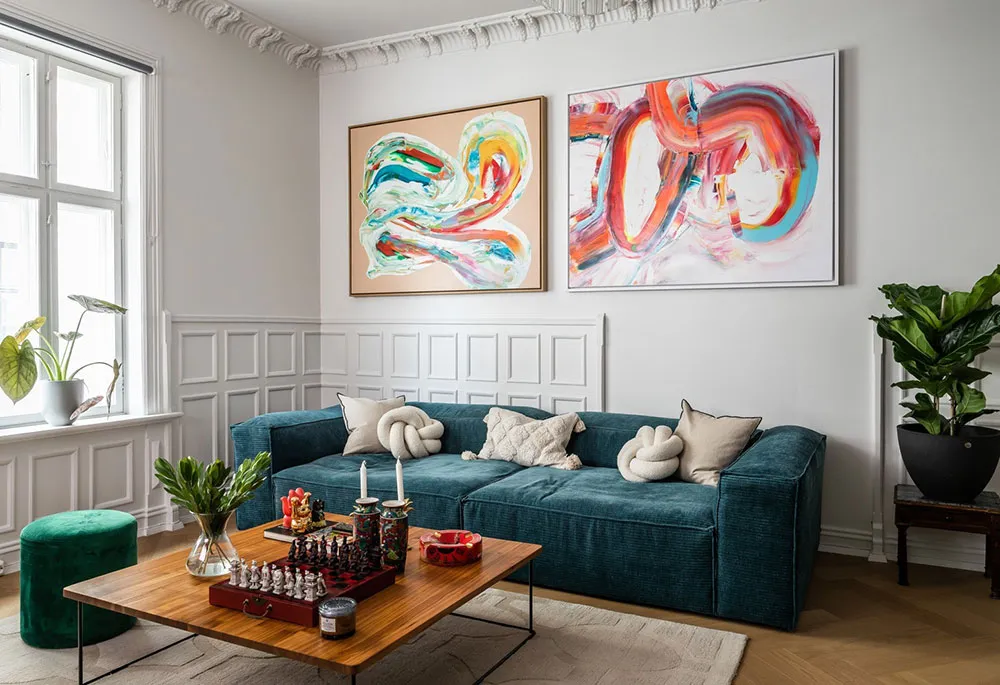दीवार पैनल एवं स्टाइलिश सजावट: नॉर्वे में एक अपार्टमेंट