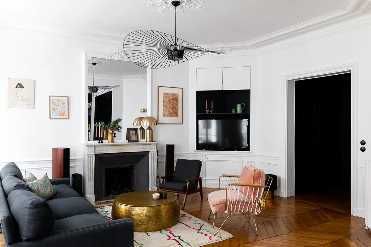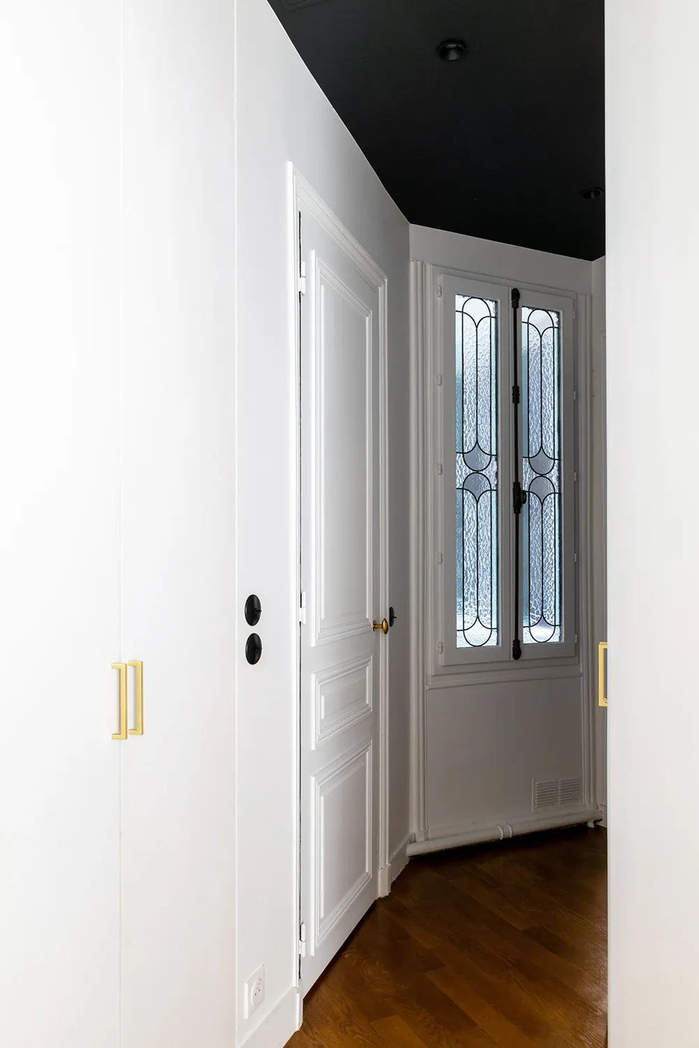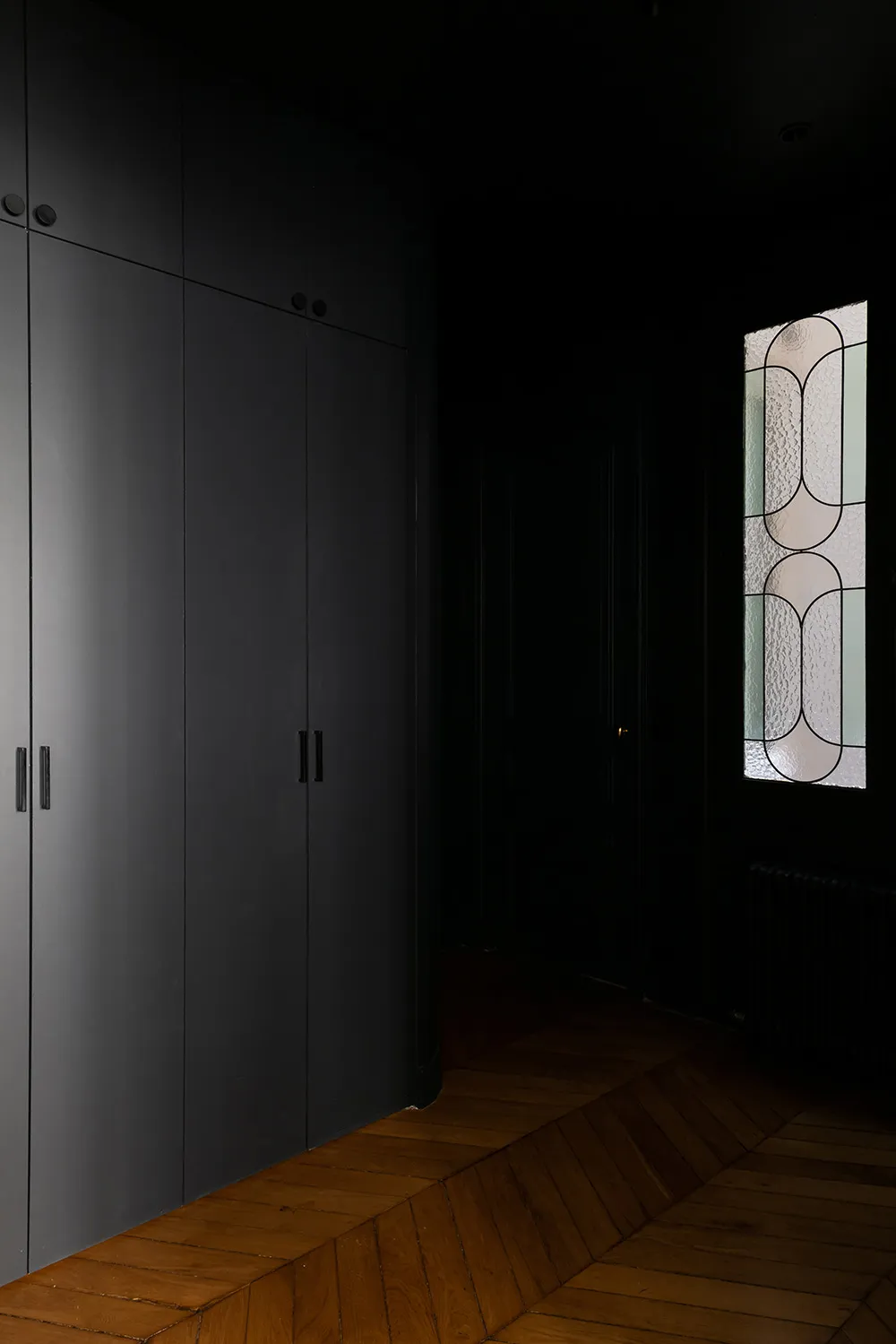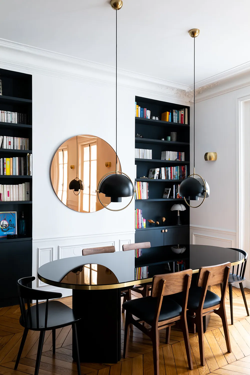 काले रंग का उपयोग अक्सर पेरिस की सुंदर आंतरिक डिज़ाइनों में नहीं किया जाता। 10वें आरोन्डिसमें स्थित इस अपार्टमेंट में, डिज़ाइनरों ने ऐसी कठोर रंग-पैलेट का उपयोग करके शास्त्रीय सुंदरता एवं आधुनिक व्यावहारिकता के बीच संतुलन बनाया है।