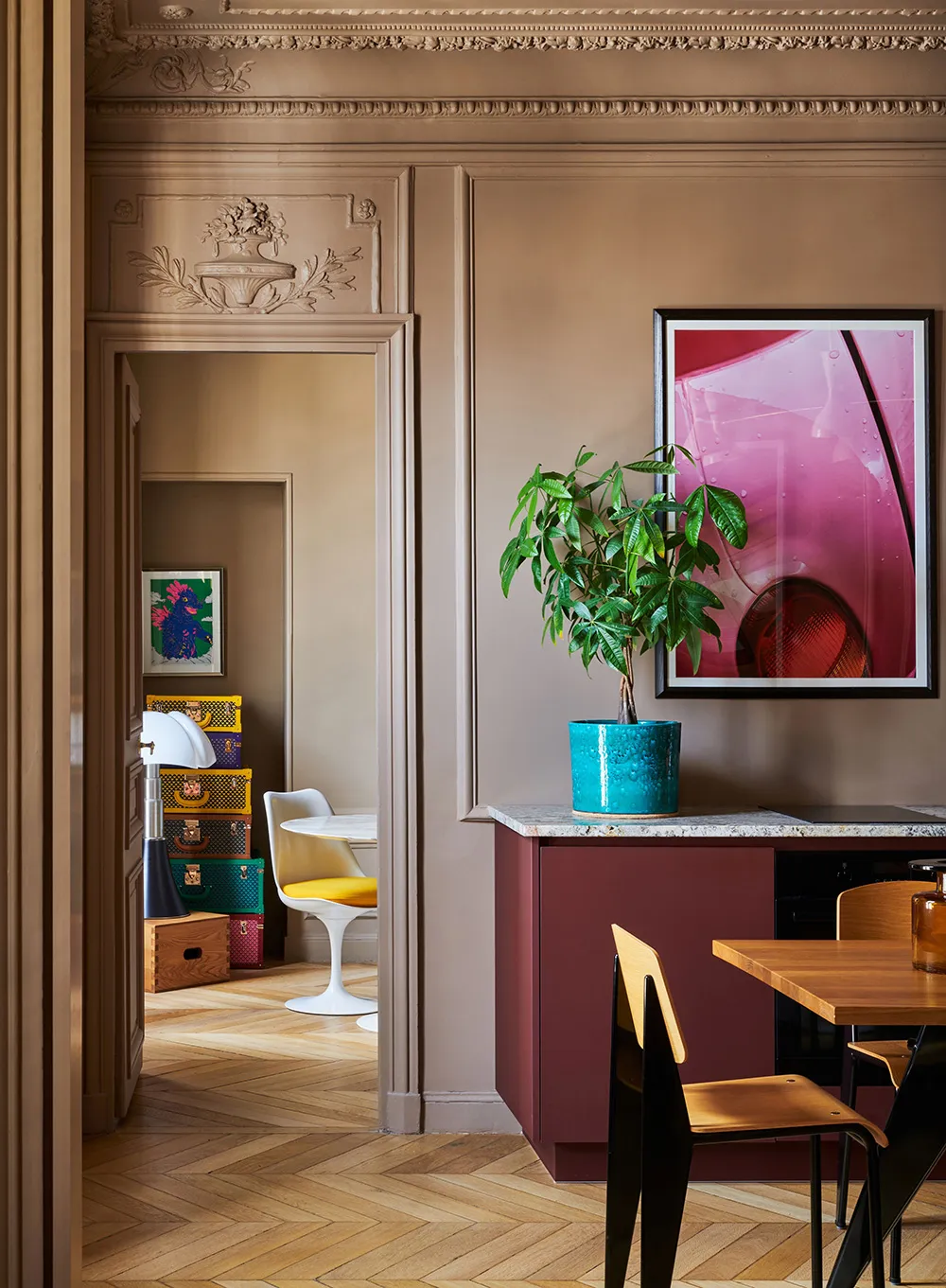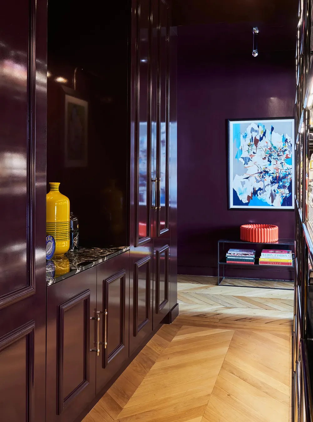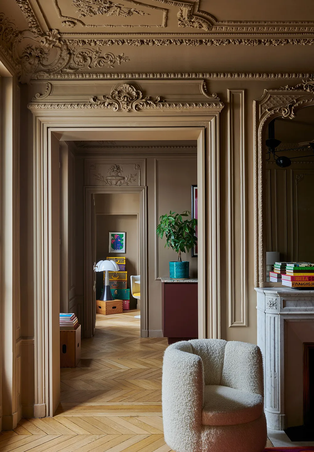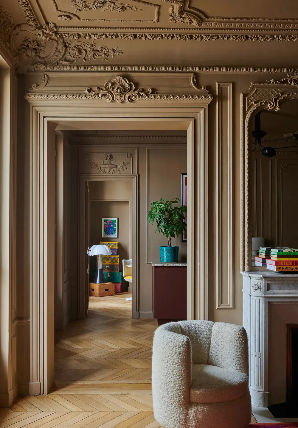 चॉकलेट वॉल्स एवं लक्जरी मोल्डिंग्स: पेरिस में स्थित एक डिज़ाइनर अपार्टमेंट