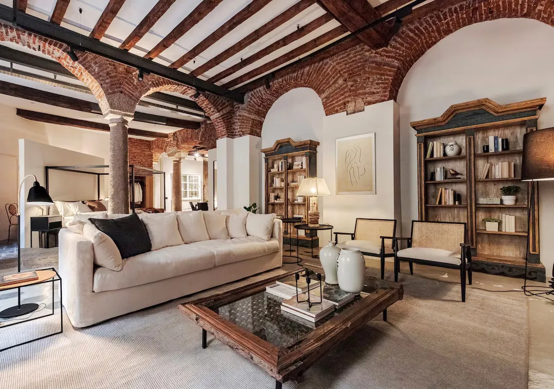 ईंट की मेहराब एवं स्तंभ: मिलान में 12वीं शताब्दी की इमारत में स्थित एक अद्भुत अपार्टमेंट