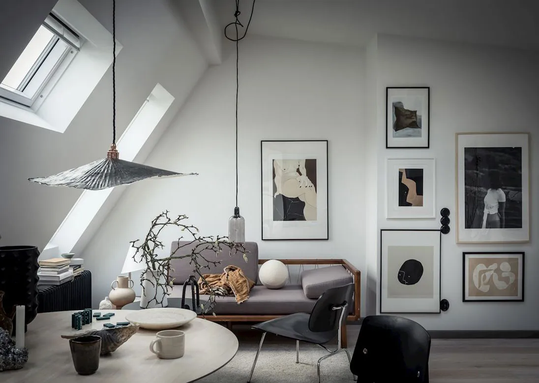 एक आरामदायक, छोटा सा अट्रियум; जिसमें उत्तम क्वालिटी की फर्नीचर एवं पोस्टर हैं… (क्षेत्रफल: 35 वर्ग मीटर)