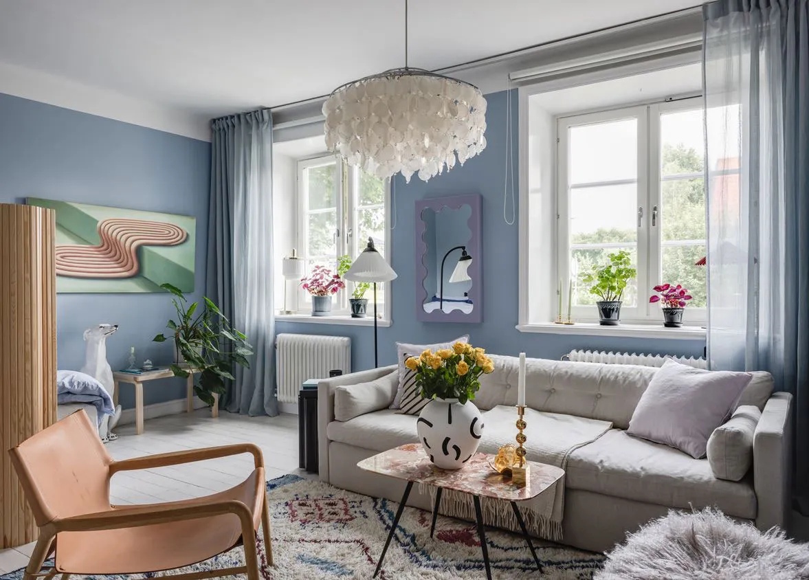 स्टॉकहोम में नीली दीवारों वाला “फन स्टूडियो अपार्टमेंट” (41 वर्ग मीटर)