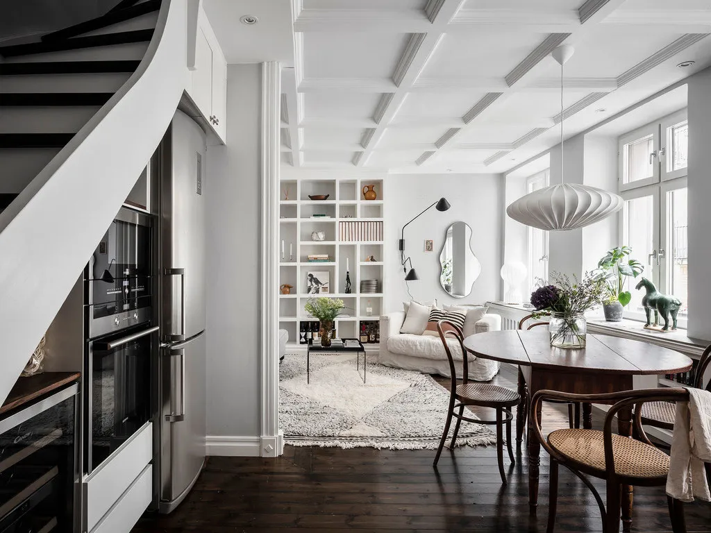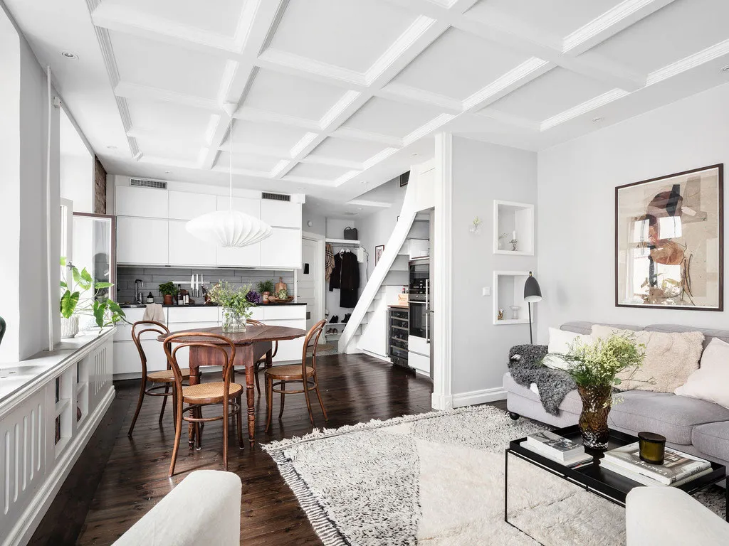 गोटिंगेन स्थित इस छोटे, दो मंजिला अपार्टमेंट में लगी कॉफर वाली छतें इनके आंतरिक डिज़ाइन को मजबूती एवं शानदारता प्रदान करती हैं।