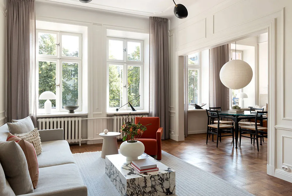 ストックホルムにある落ち着いた雰囲気の中でエレガントなモダンクラシックな住居(97平方メートル)