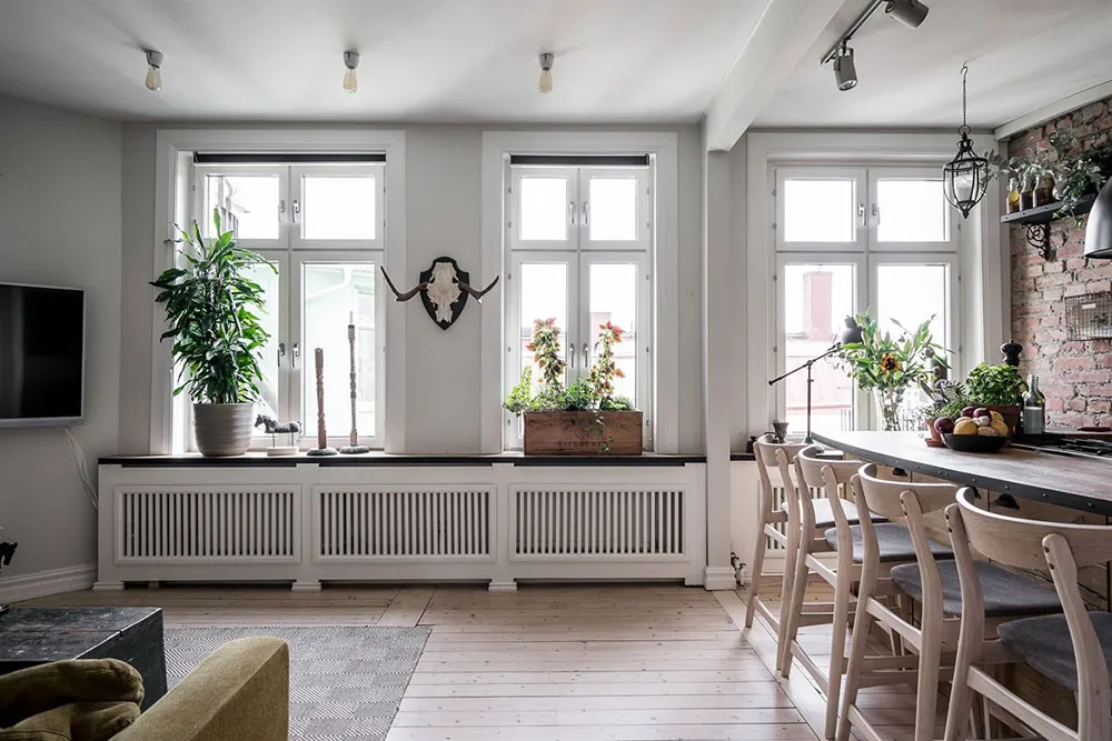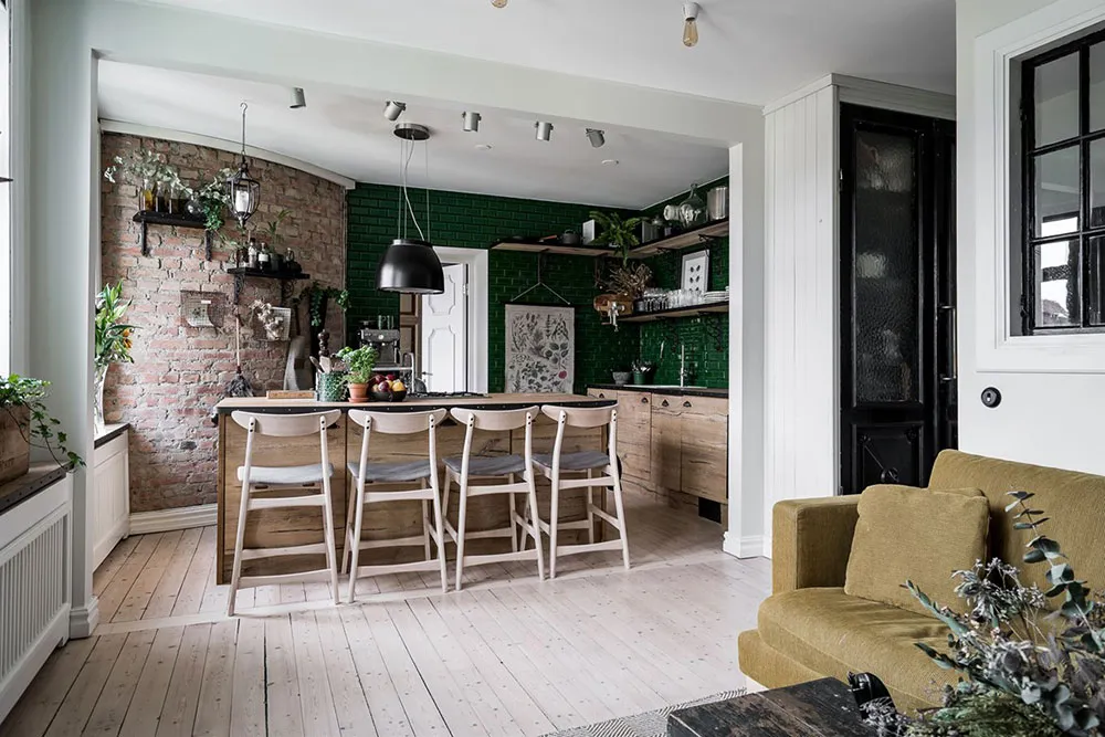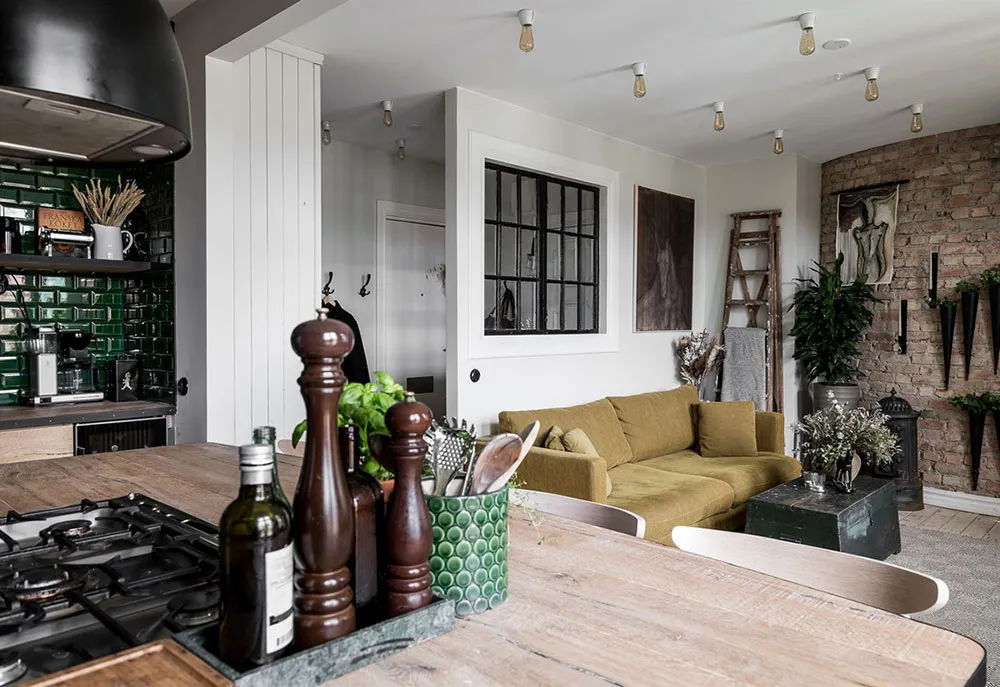 私たちは、落ち着いた色合いのスカンジナビア風インテリアに慣れ親しんでいますが、スウェーデンにあるこのアパートは、面積が小さいにもかかわらず、細部や質感、そして生きた植物に富んでいます。