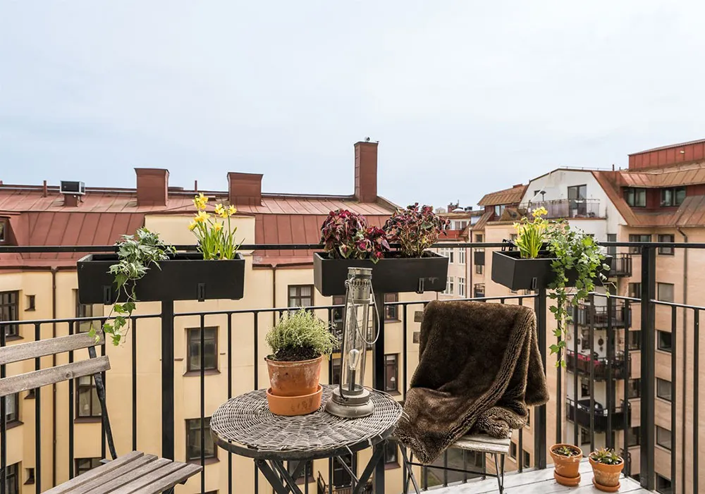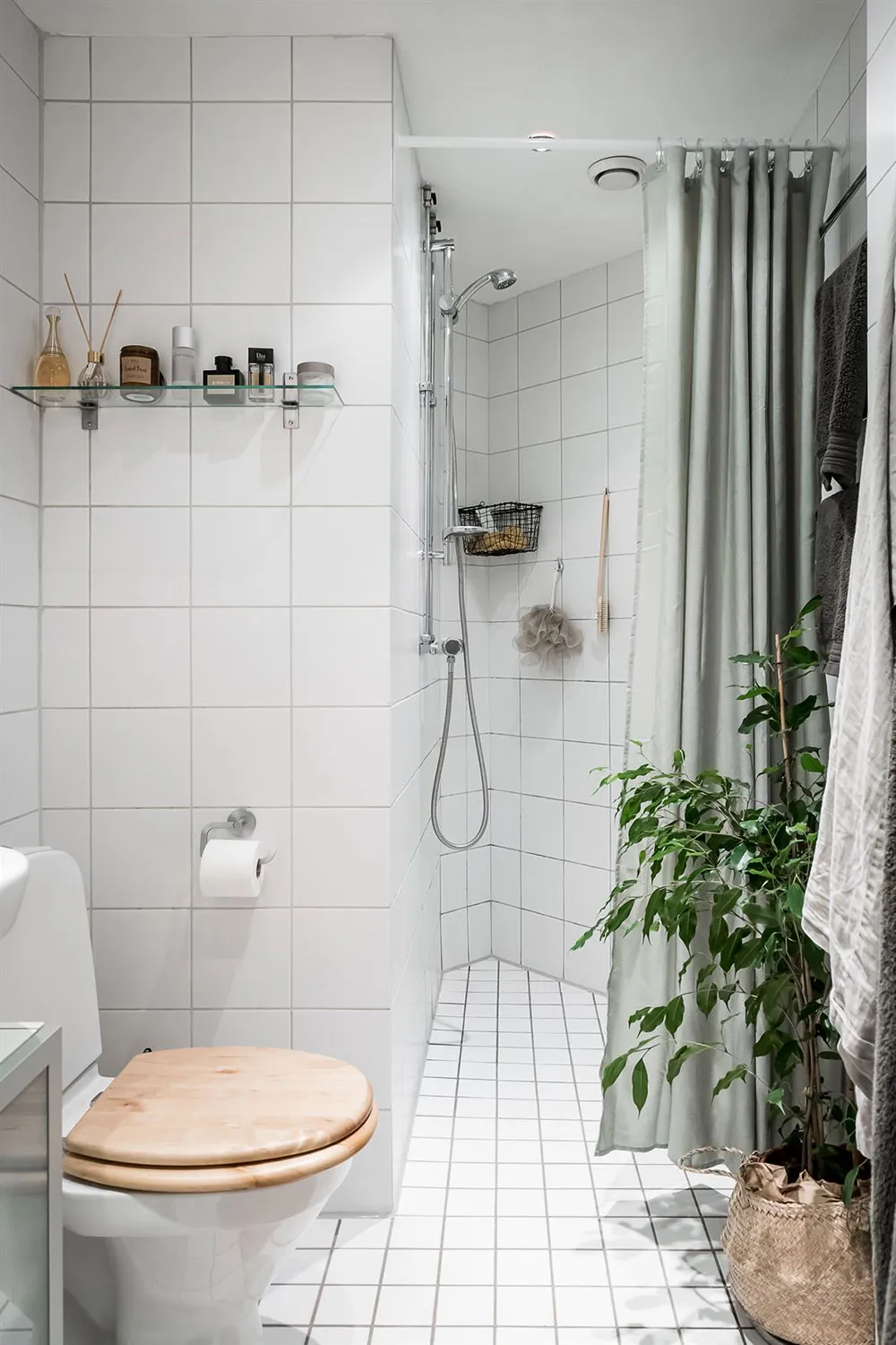 スウェーデンにある50平方メートルの小さなアパートのデザインにおける装飾品や観葉植物の豊富な活用