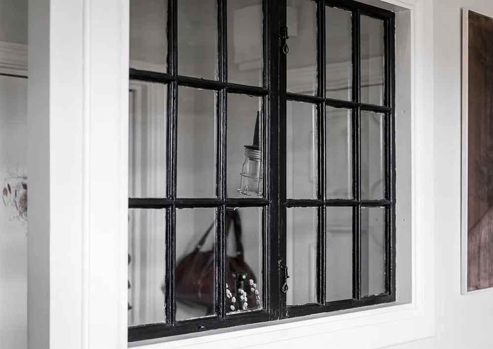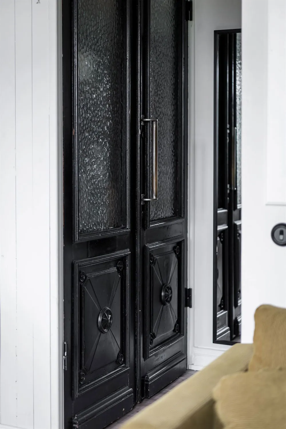 黒い床を基調にした、落ち着いた色合いのスカンジナビア風インテリア