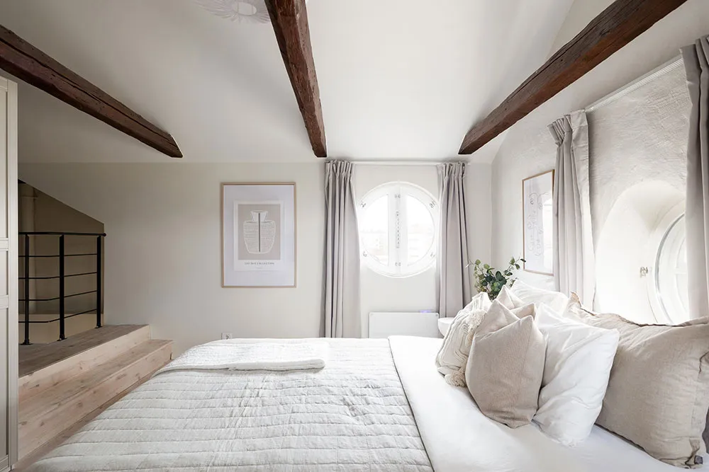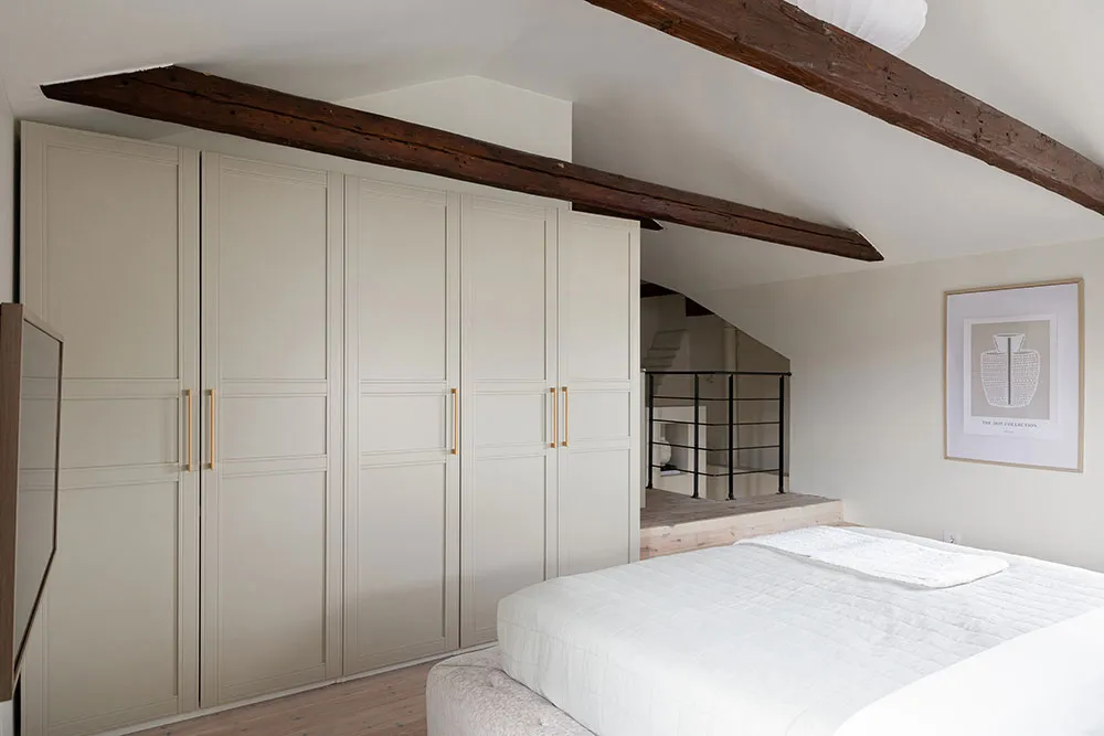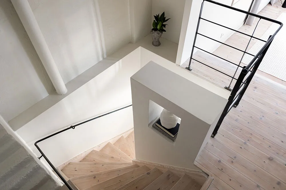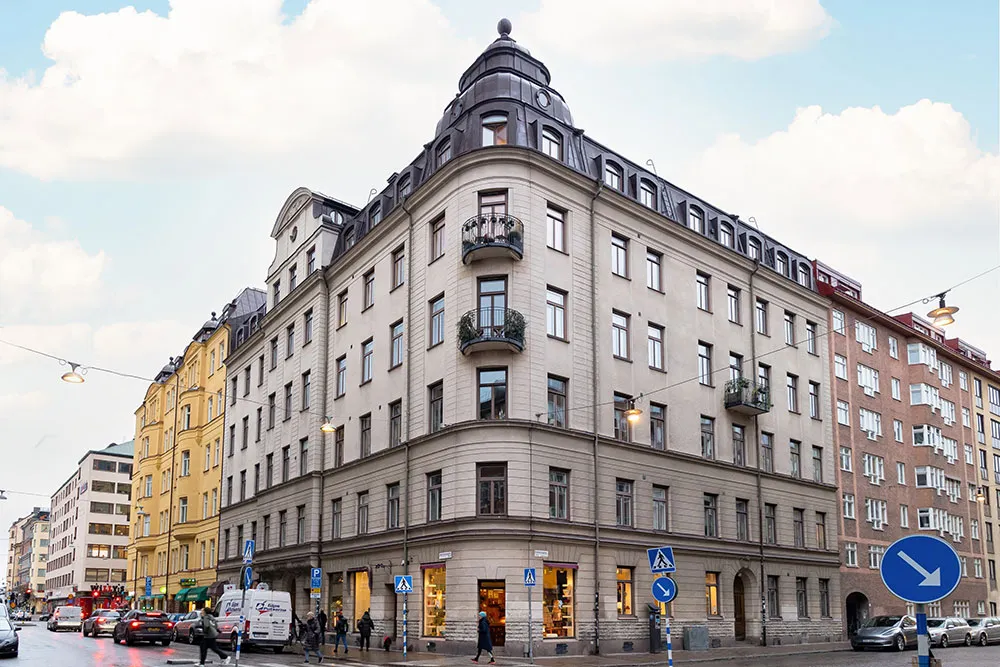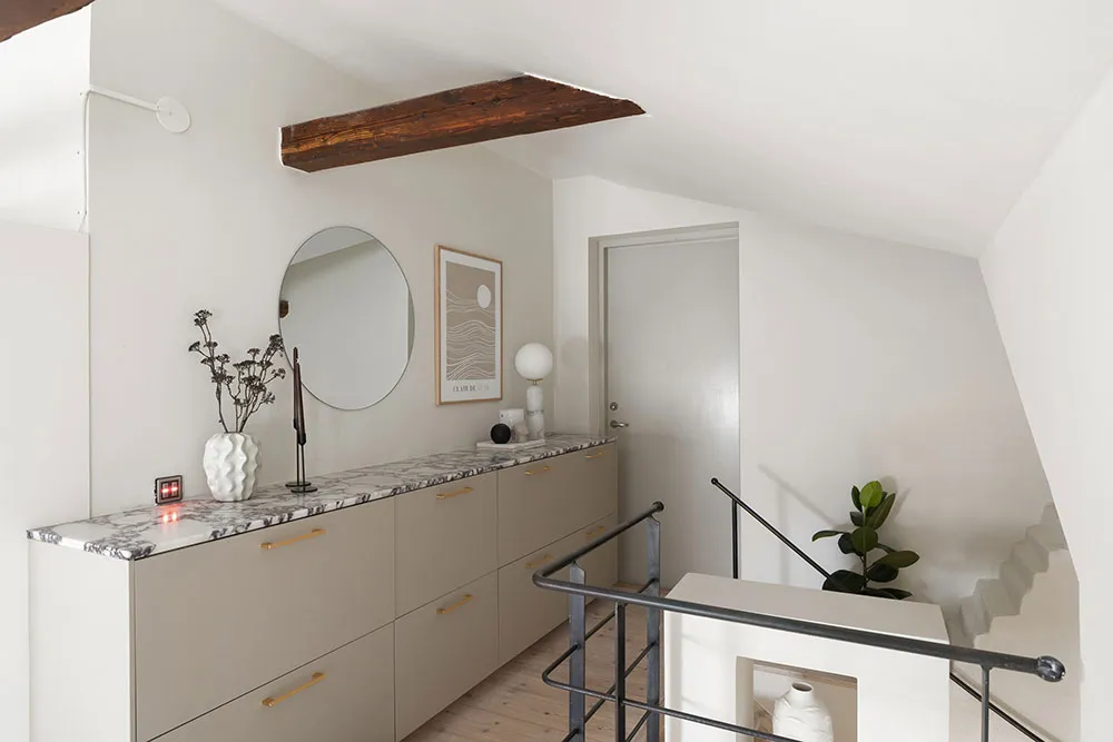 ストックホルムにあるこのアパートは、市の中心部にある古いマンションの上の2階に位置していますが、居住スペースとしてはかなりコンパクトです。