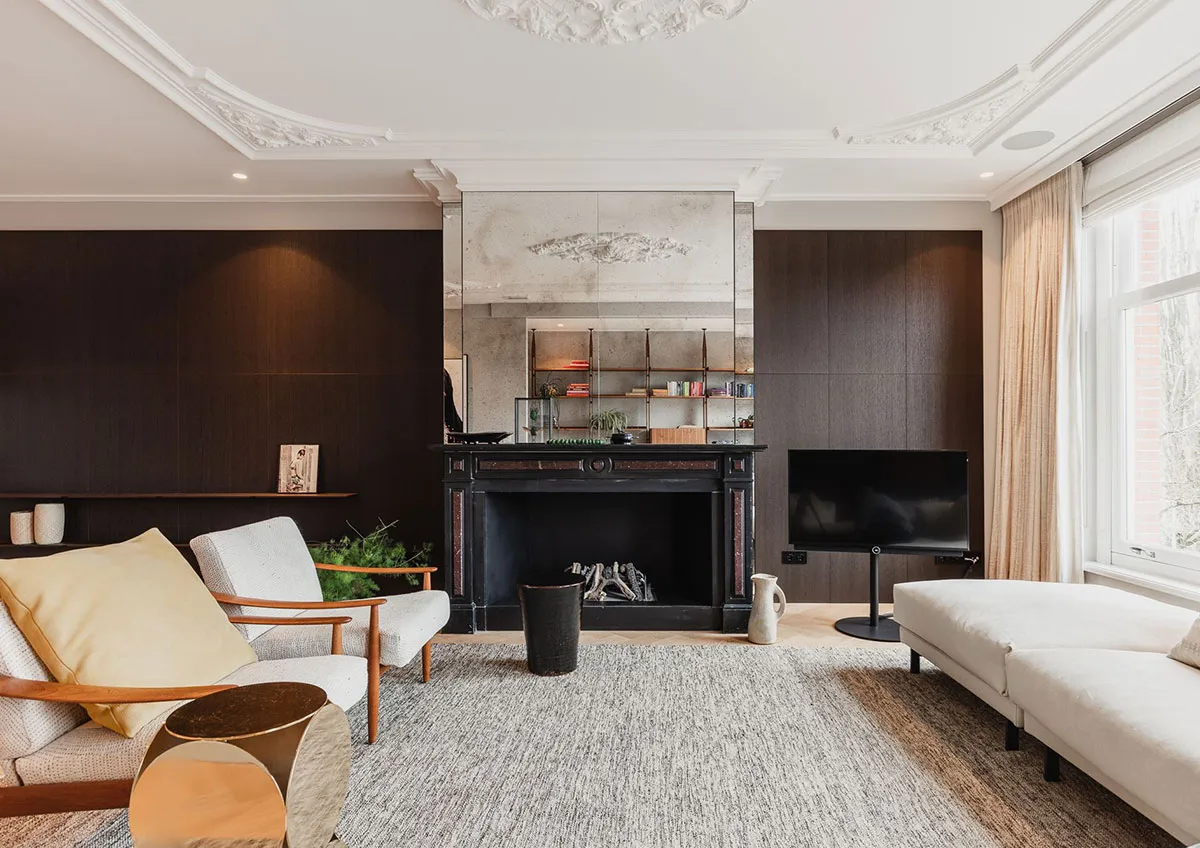 アムステルダムの市中心部にある、クラシックな装飾が施されたスタイリッシュでモダンなアパートメント