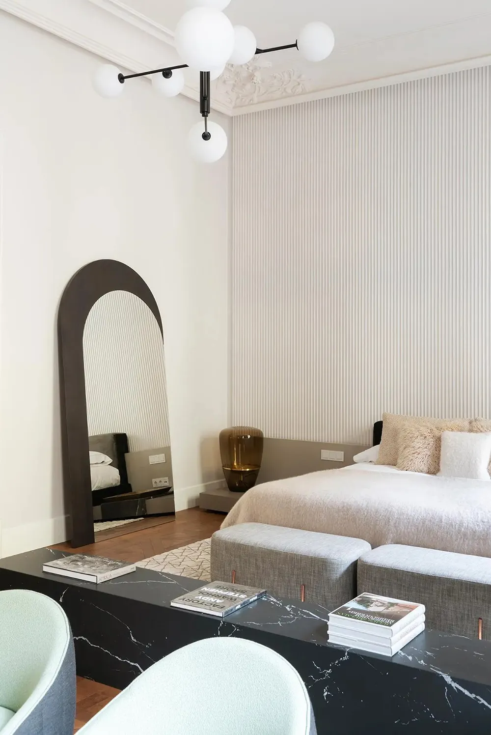 オルドルプにあるエレガントなアパートメント。モノクロの内装とユニークなキッチンを備えています。