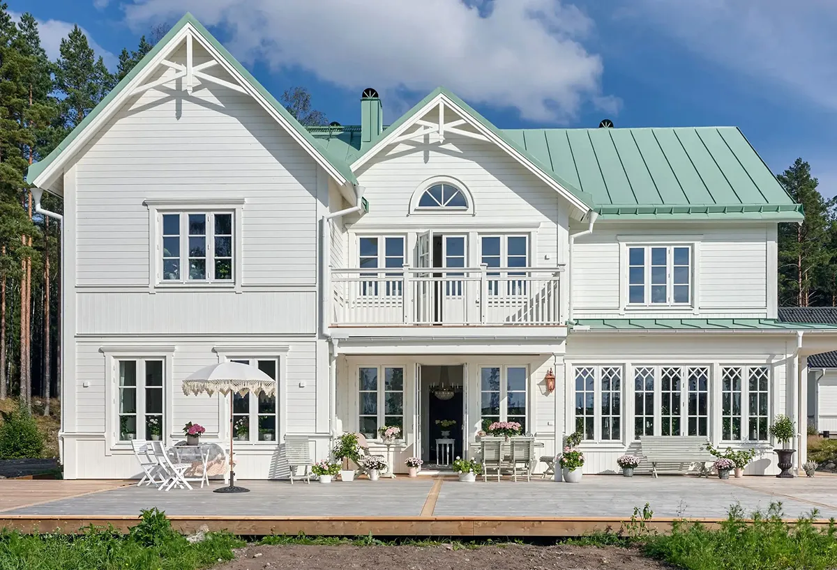 スウェーデンにある、白い色でできた大きくて美しいカントリーコテージ