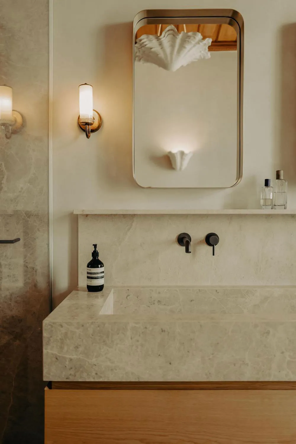 テラコッタの壁とダークなアクセント:ストックホルムにある珍しいアパート(60平方メートル)