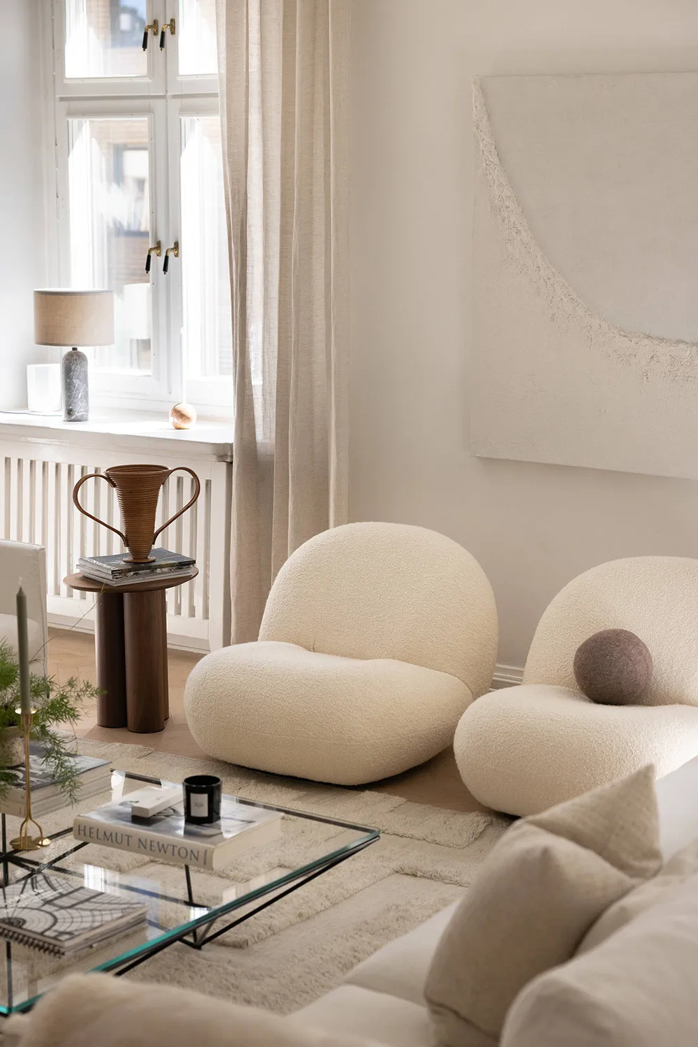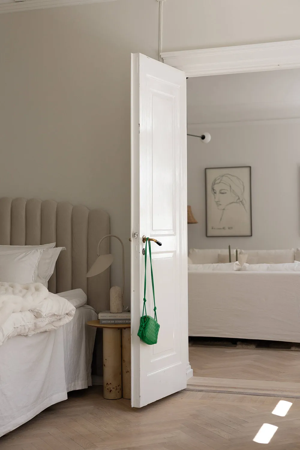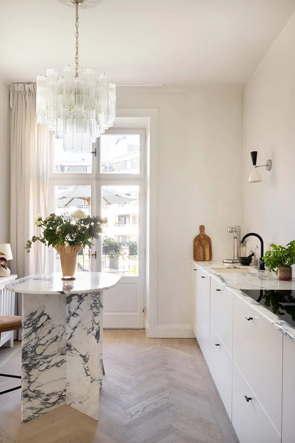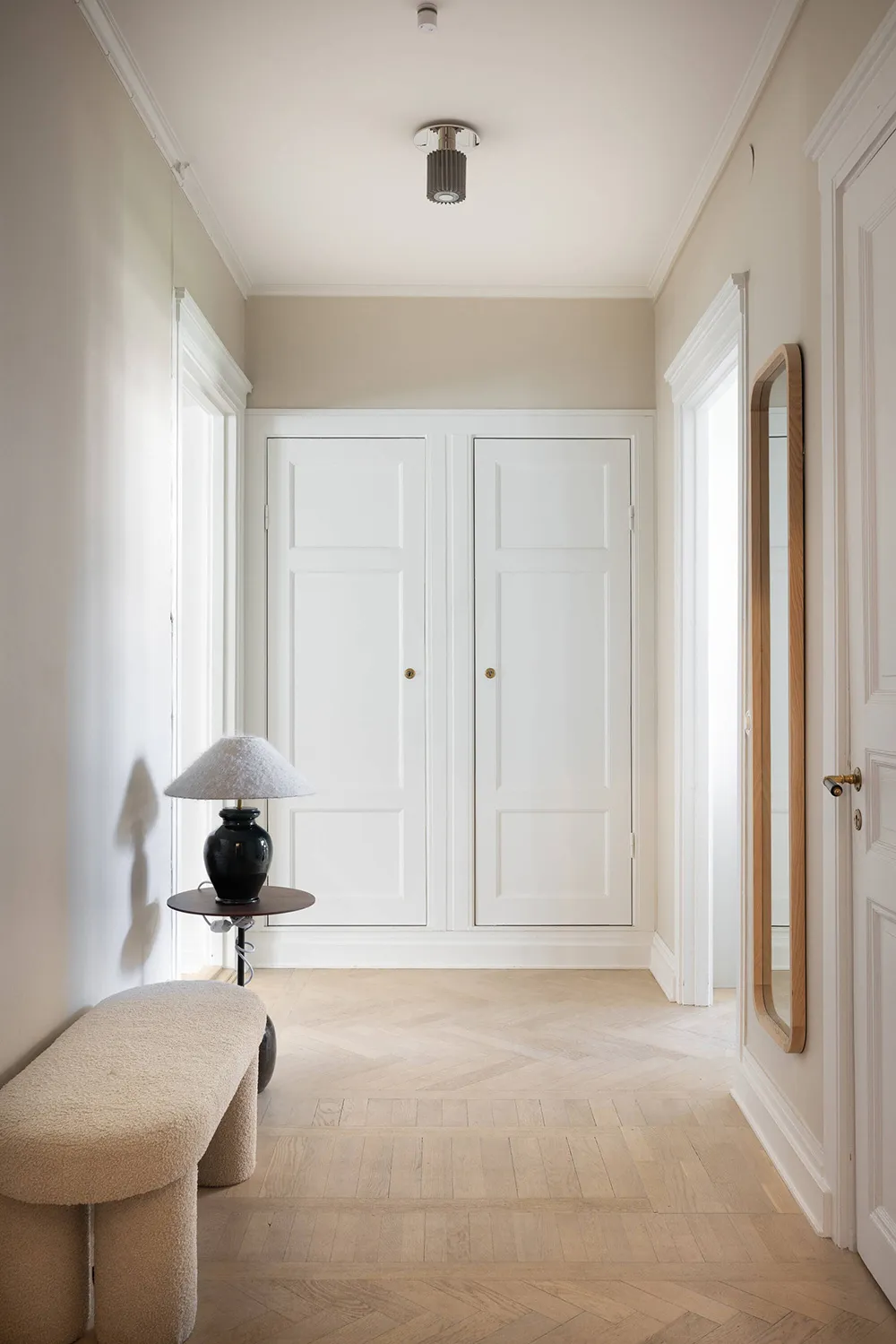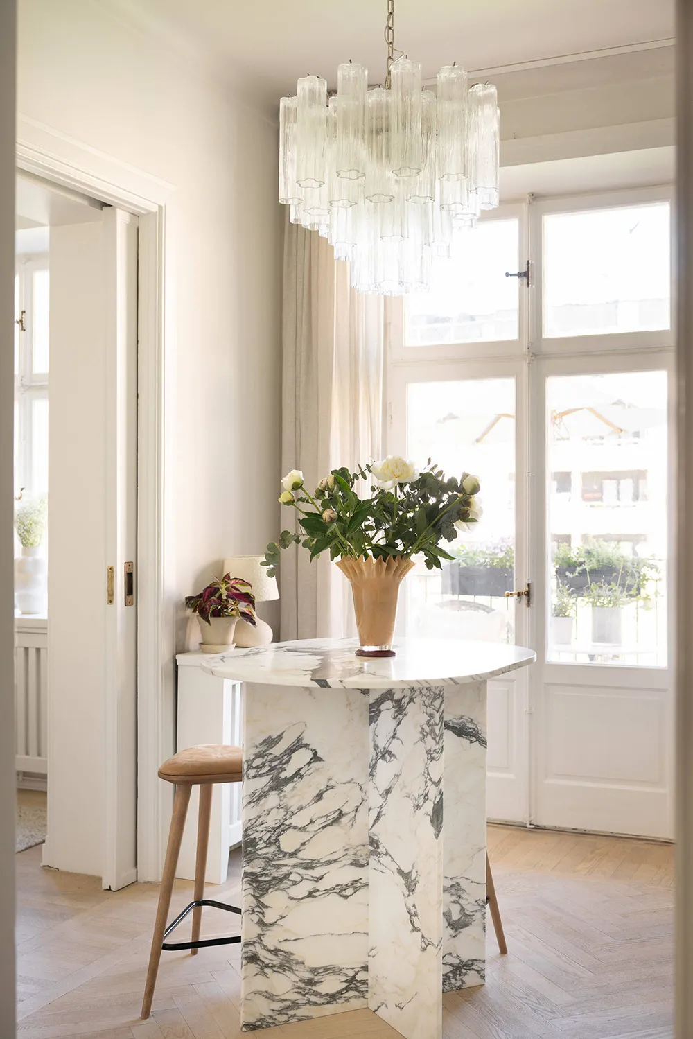 ストックホルムにある上品なアパートの、ソフトミルクのように白い内装
