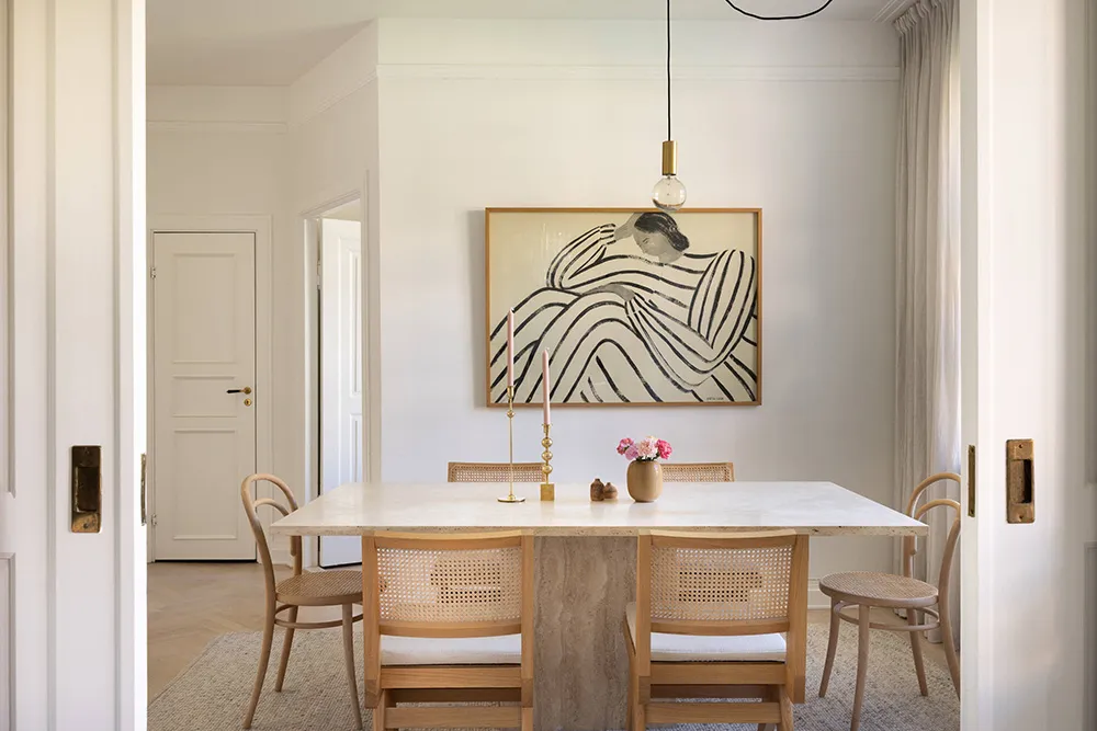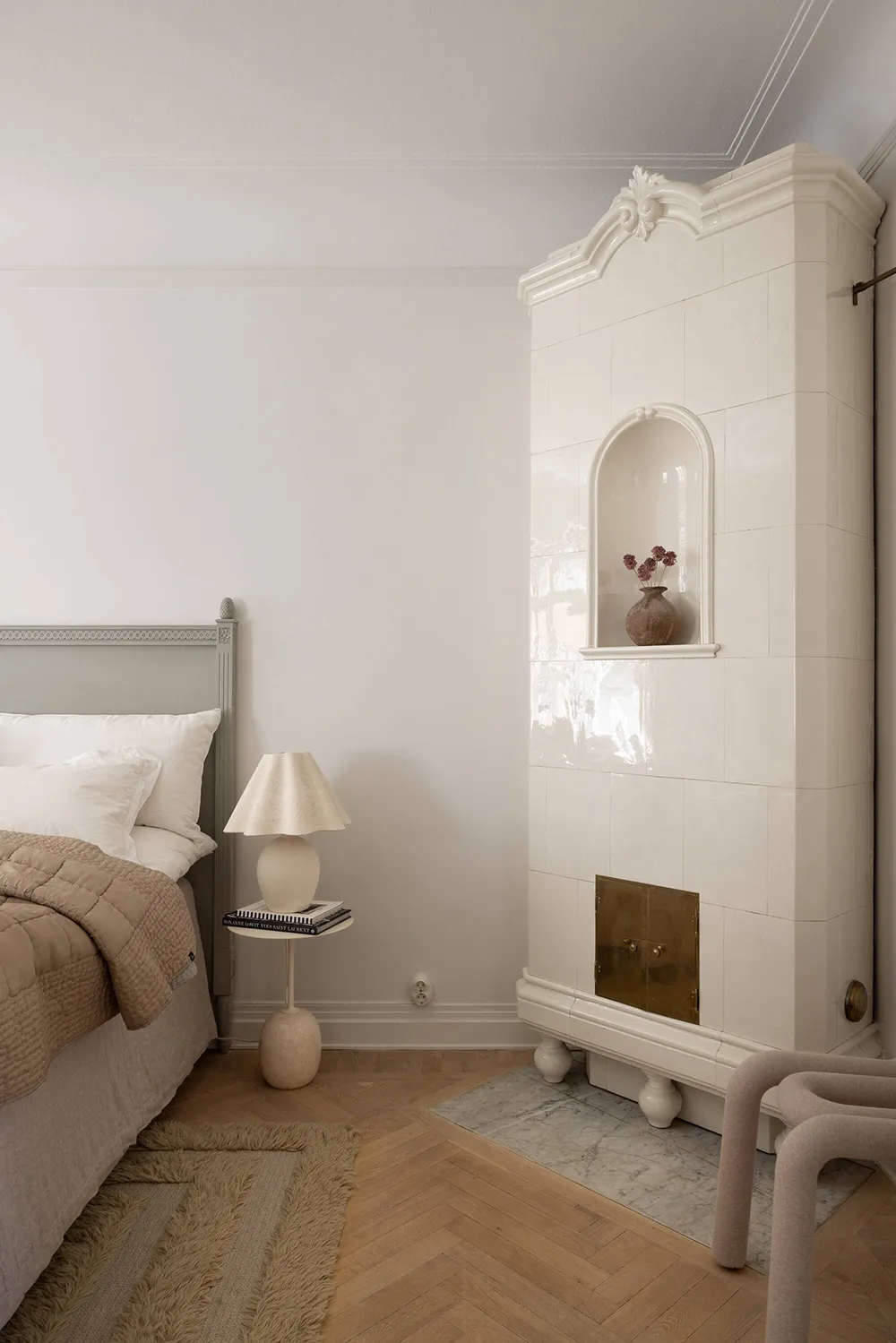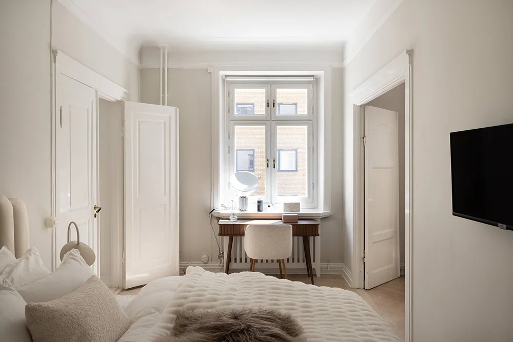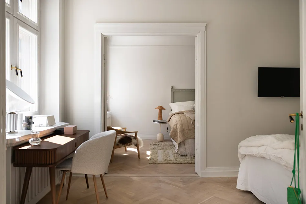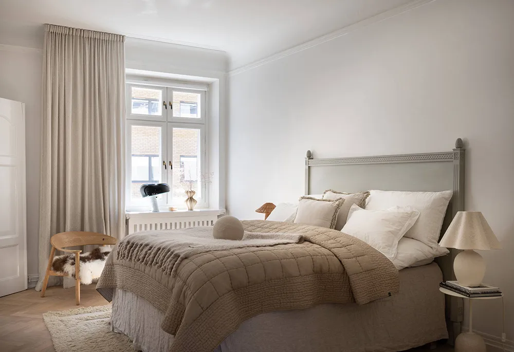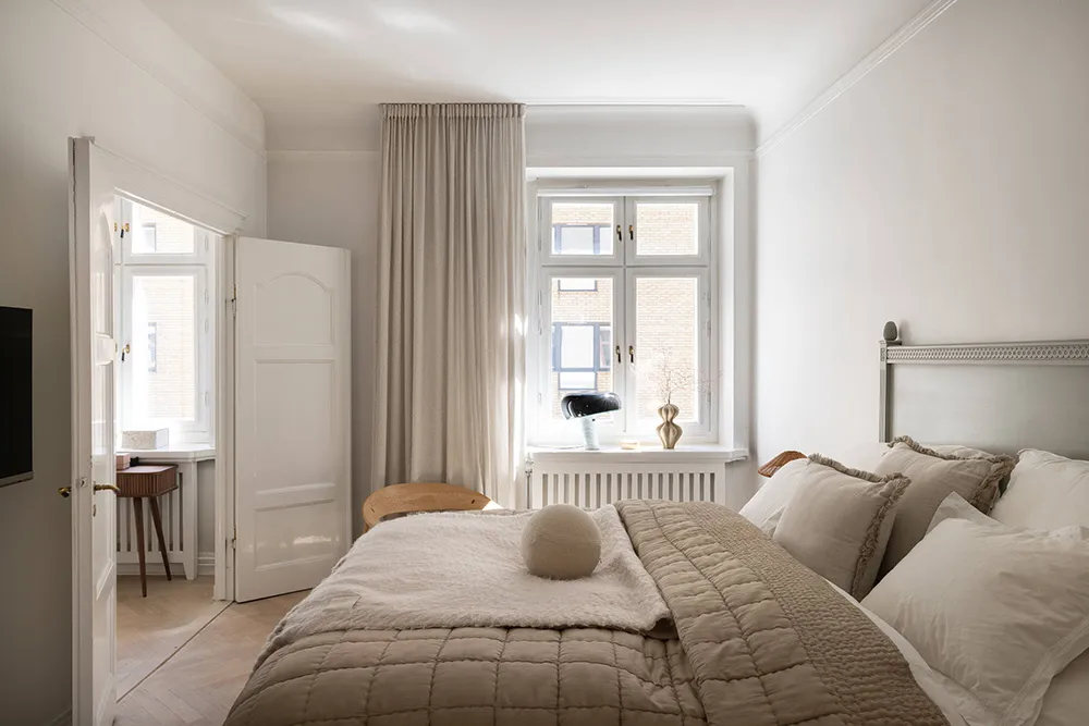 柔らかさと静けさ――スウェーデンの古い家にある、ほぼモノクロなこのアパートの内装は、まさにこれらの感情を呼び起こします。