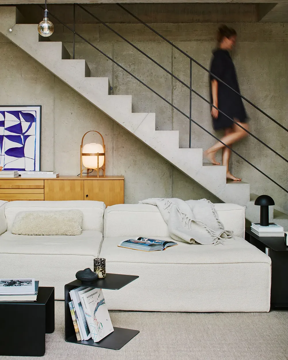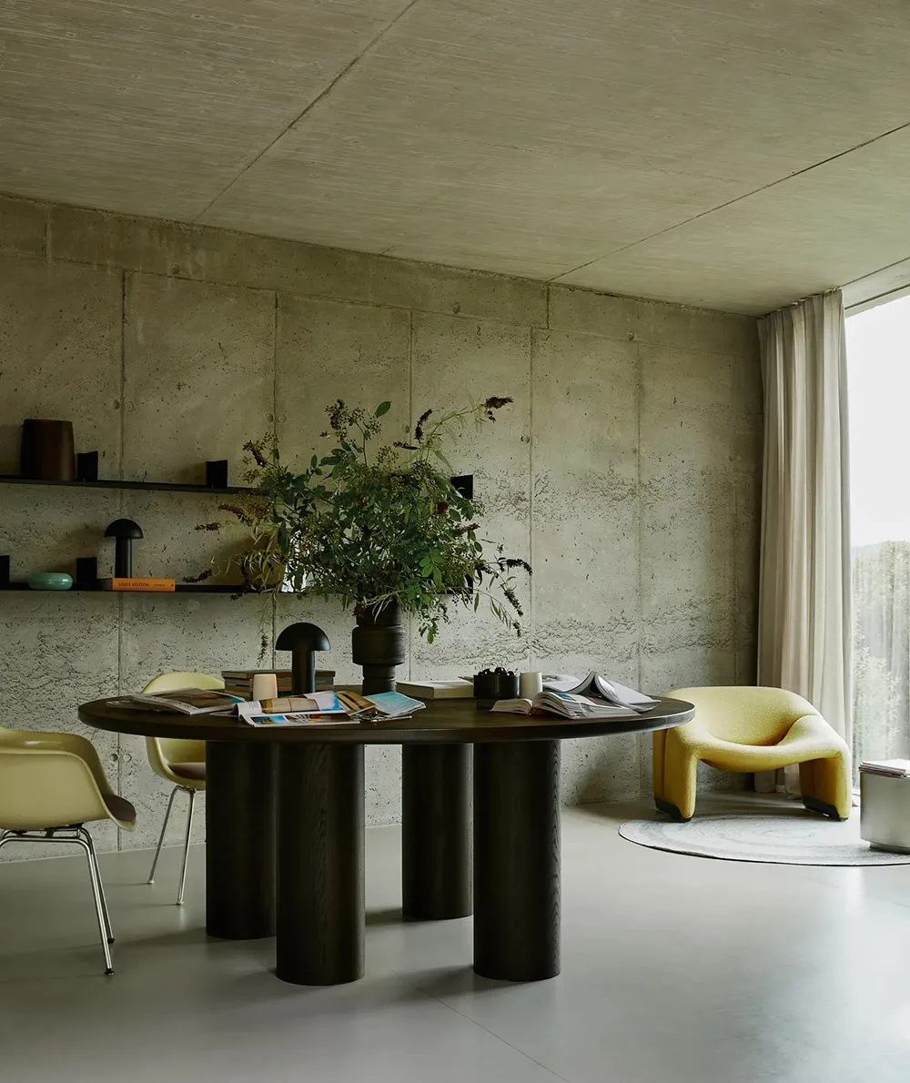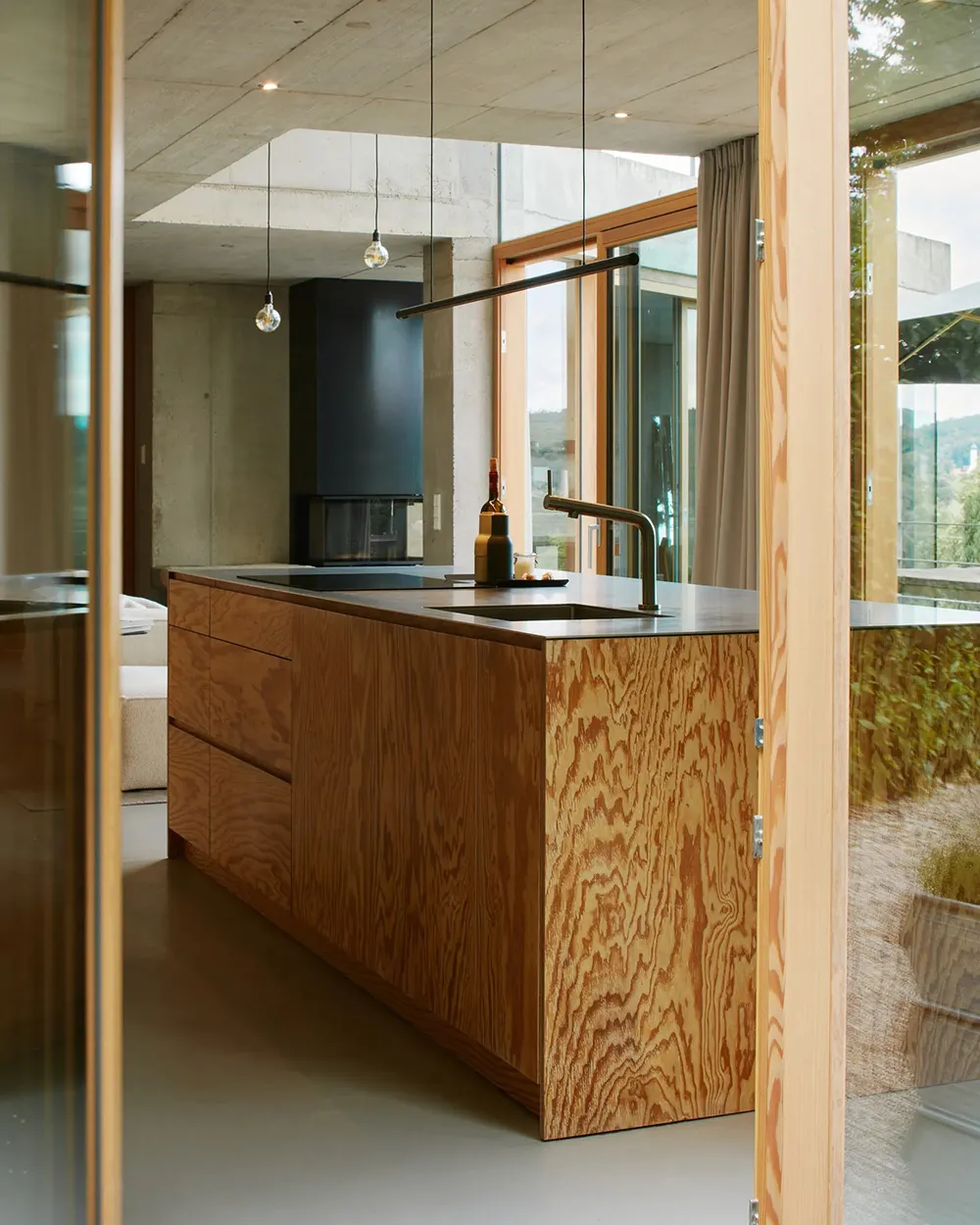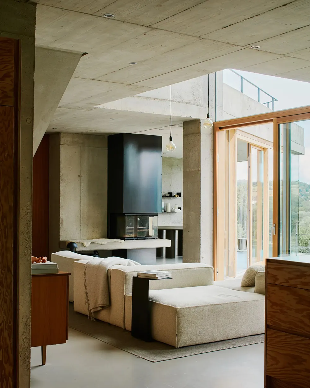コンクリートはかなり冷たい素材とされていますが、ミュンヘン郊外にあるこのモダンな家では、コンクリートの表面が多用されているにもかかわらず、温かく居心地の良い雰囲気が広がっています。