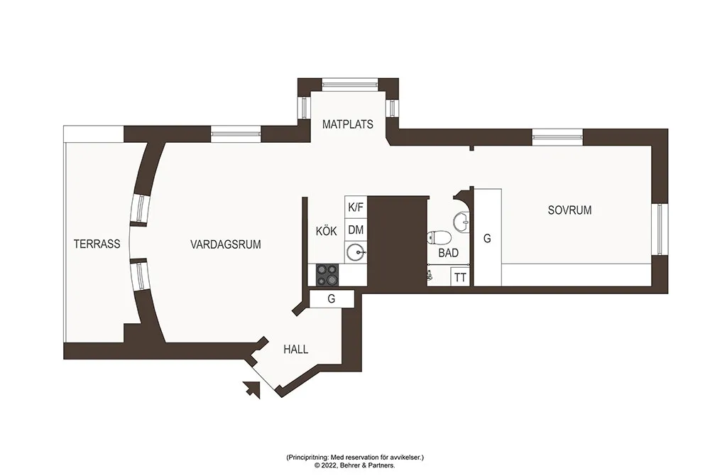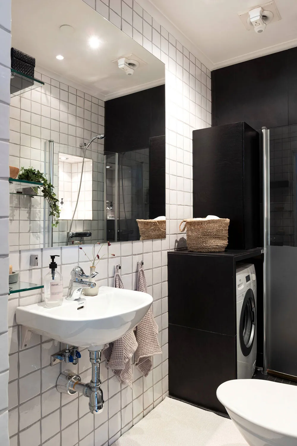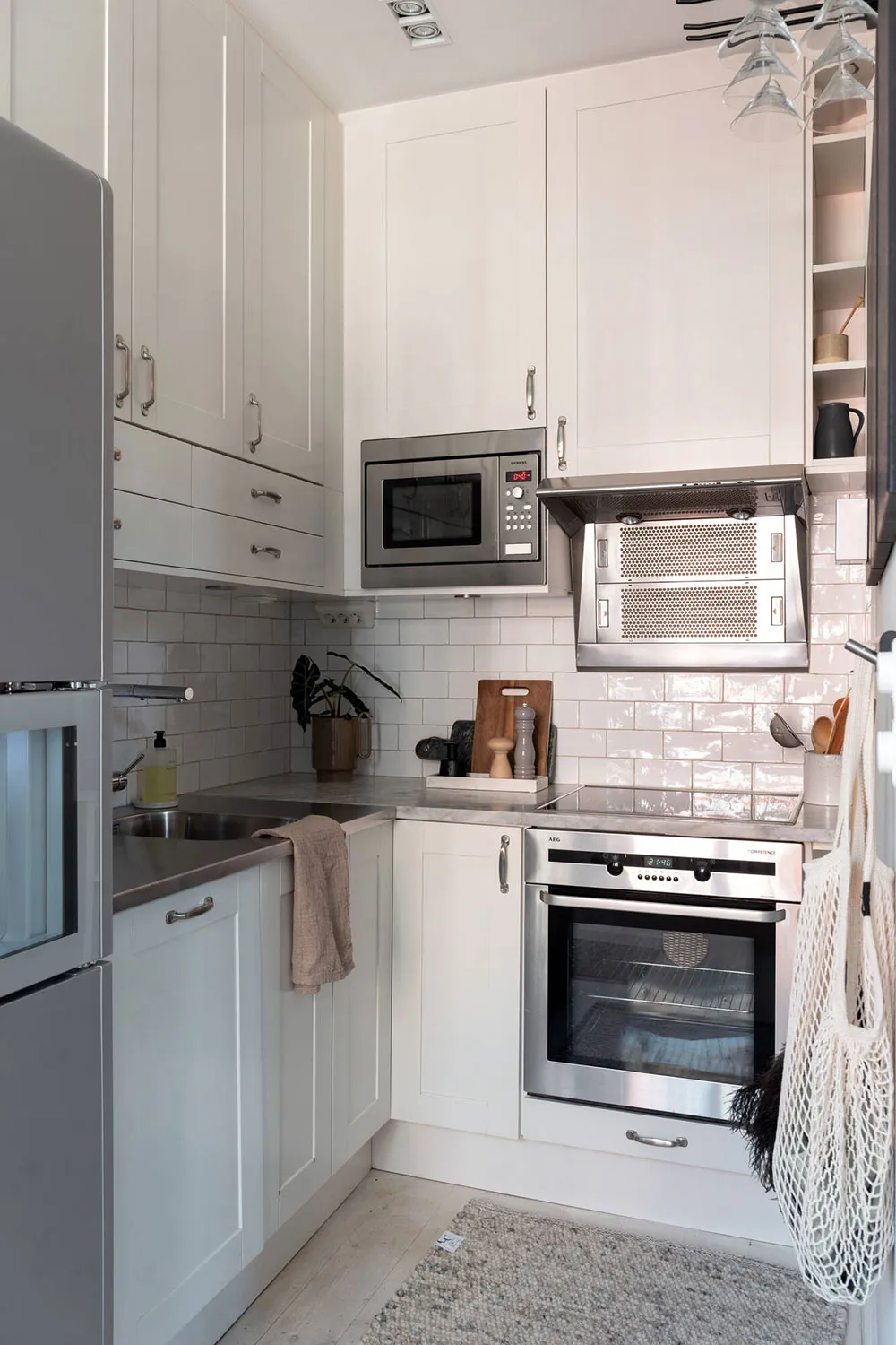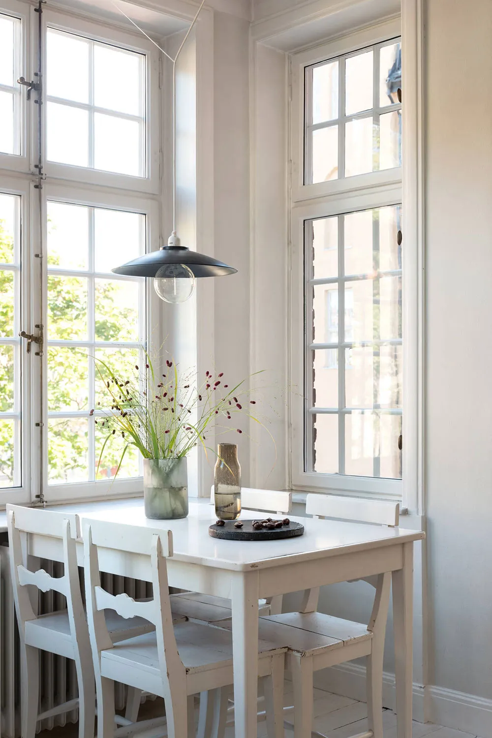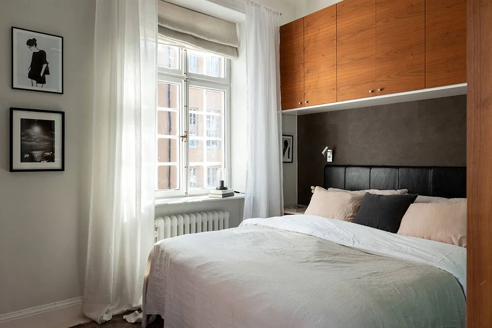 ストックホルムにあるこの2ベッドルームのアパートは、サイズとしてはかなりコンパクトですが、夏になると広いバルコニーがダイニングエリアやリラックススペースを備えた本格的なテラスに変わり、生活空間が大きく広がります。