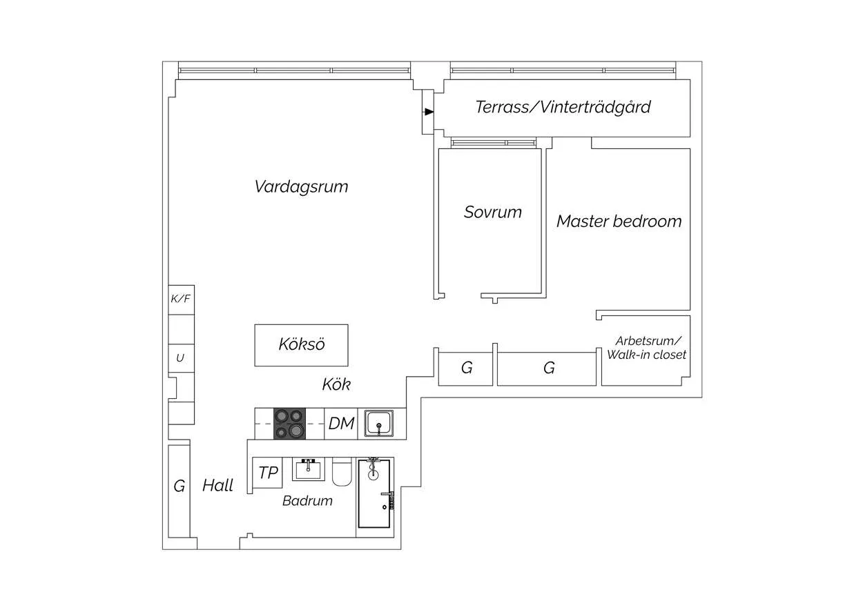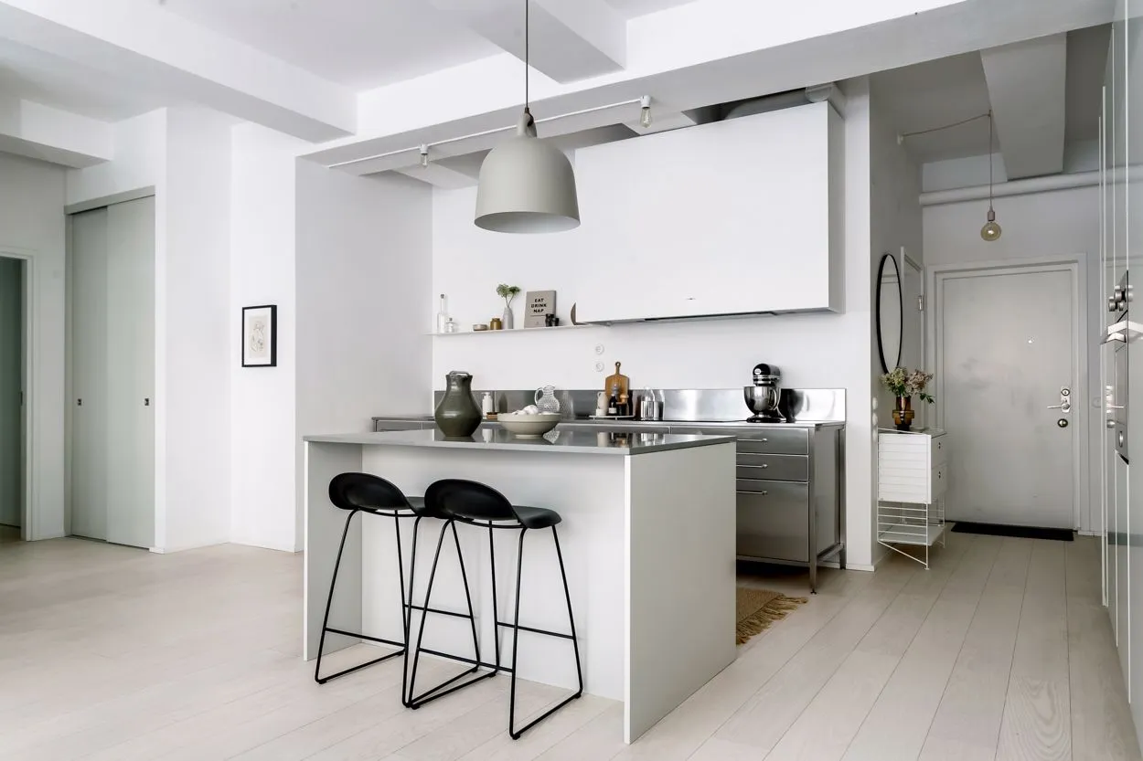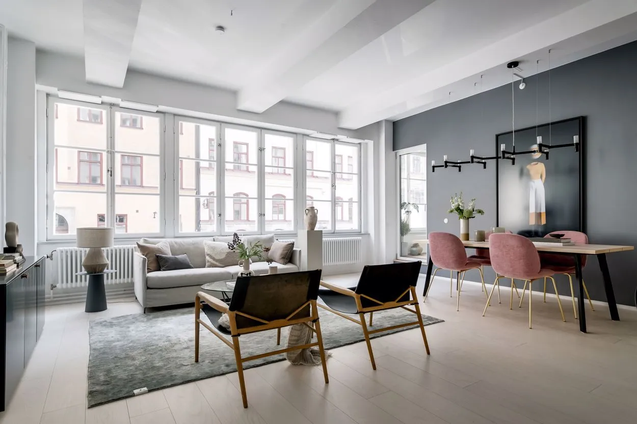 広々とした空間、自然光、工業用の窓、そして高い天井——これらはストックホルムにあるこのアパートが古いチョコレート工場から受け継いだ特徴です。その工場の跡地に今ではユニークな住宅ビルが建っています。