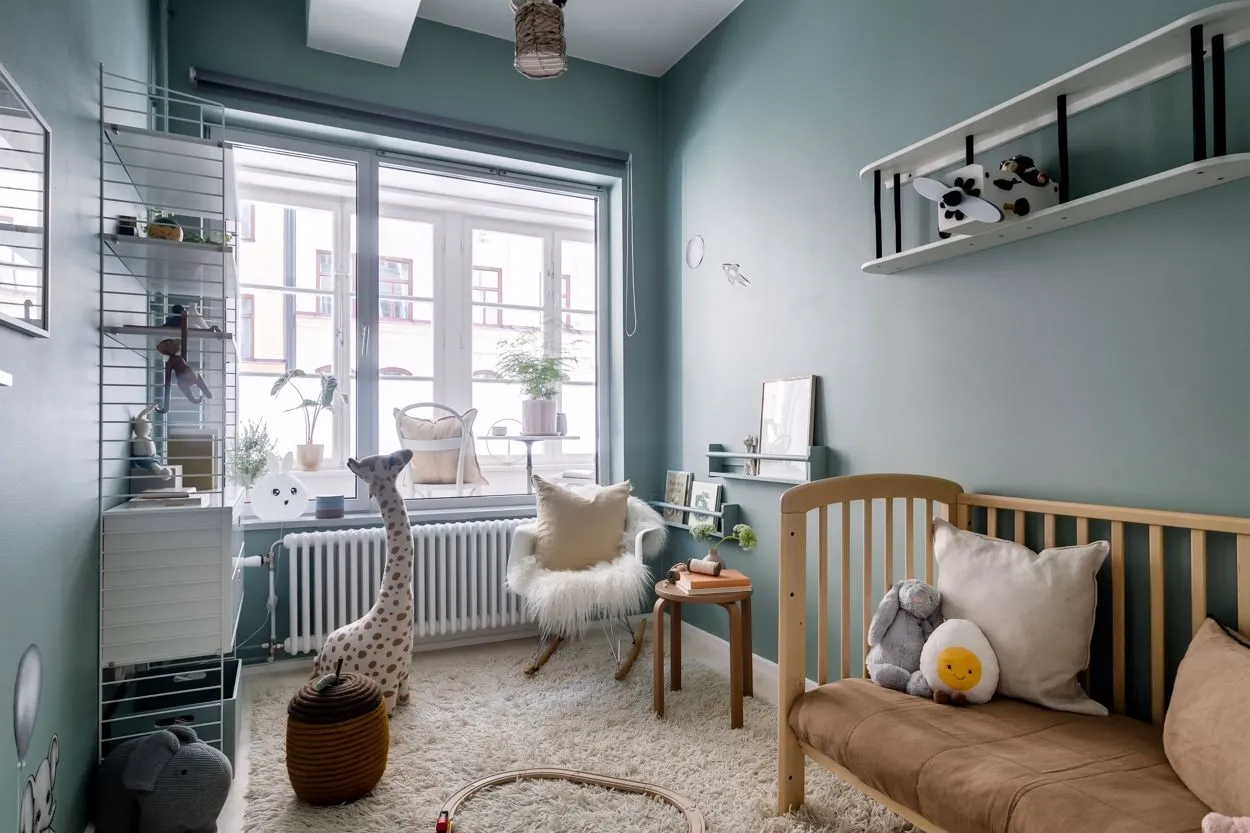 明るいパステル調の内装を持つジョージア風タウンハウス