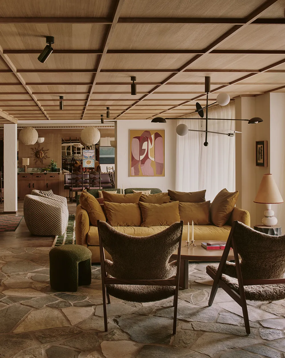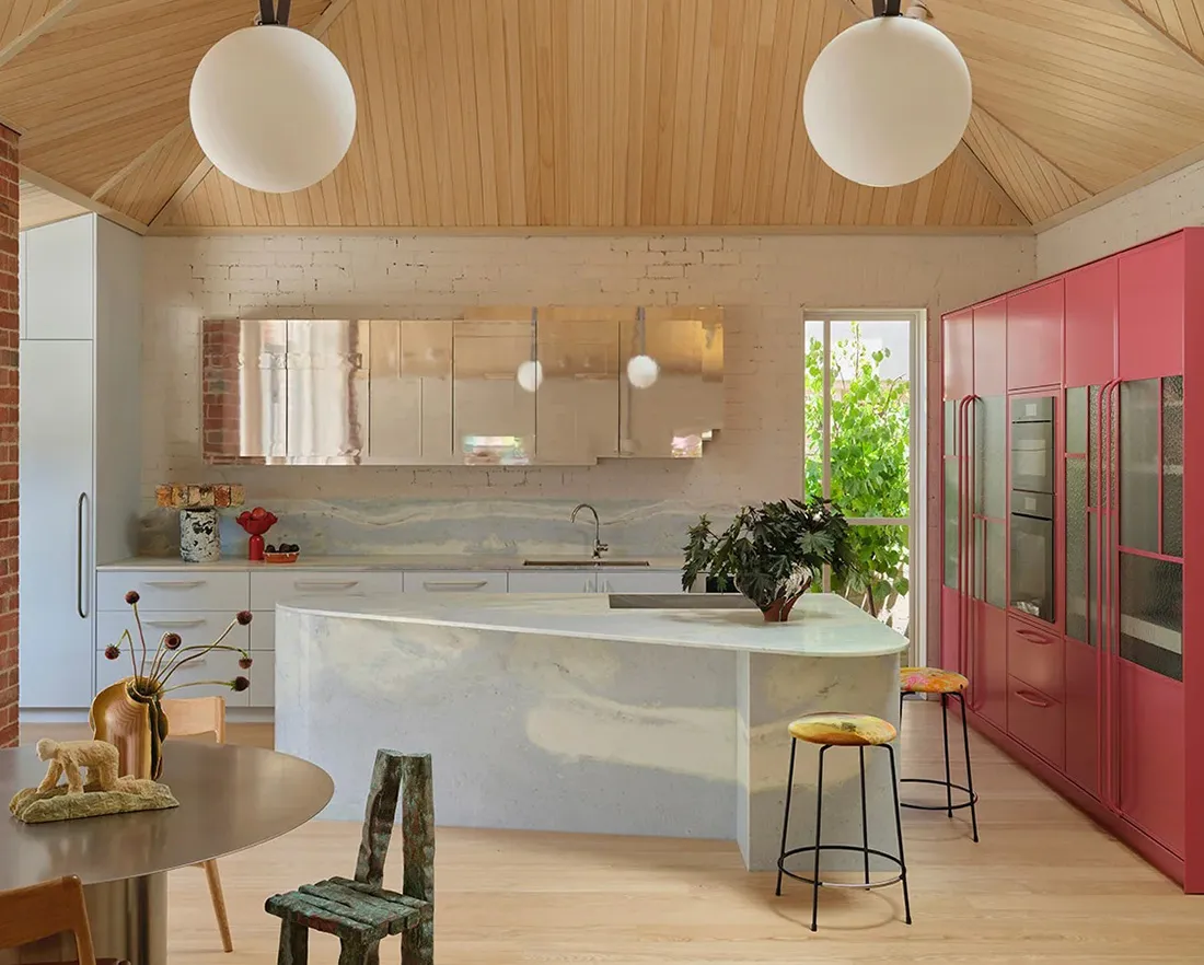 メルボルンの住宅内装における美しいパステル調のアクセント