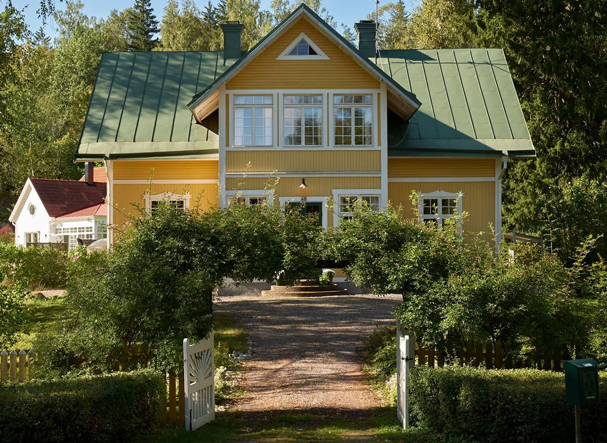 スウェーデンにある美しい黄色いコテージ、その居心地の良いインテリア