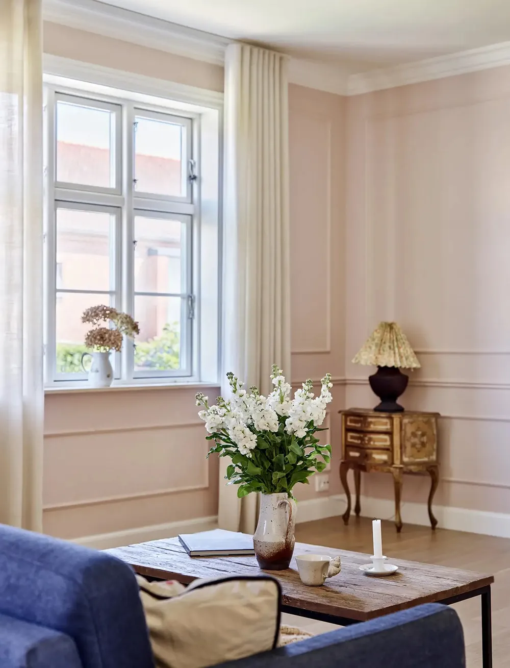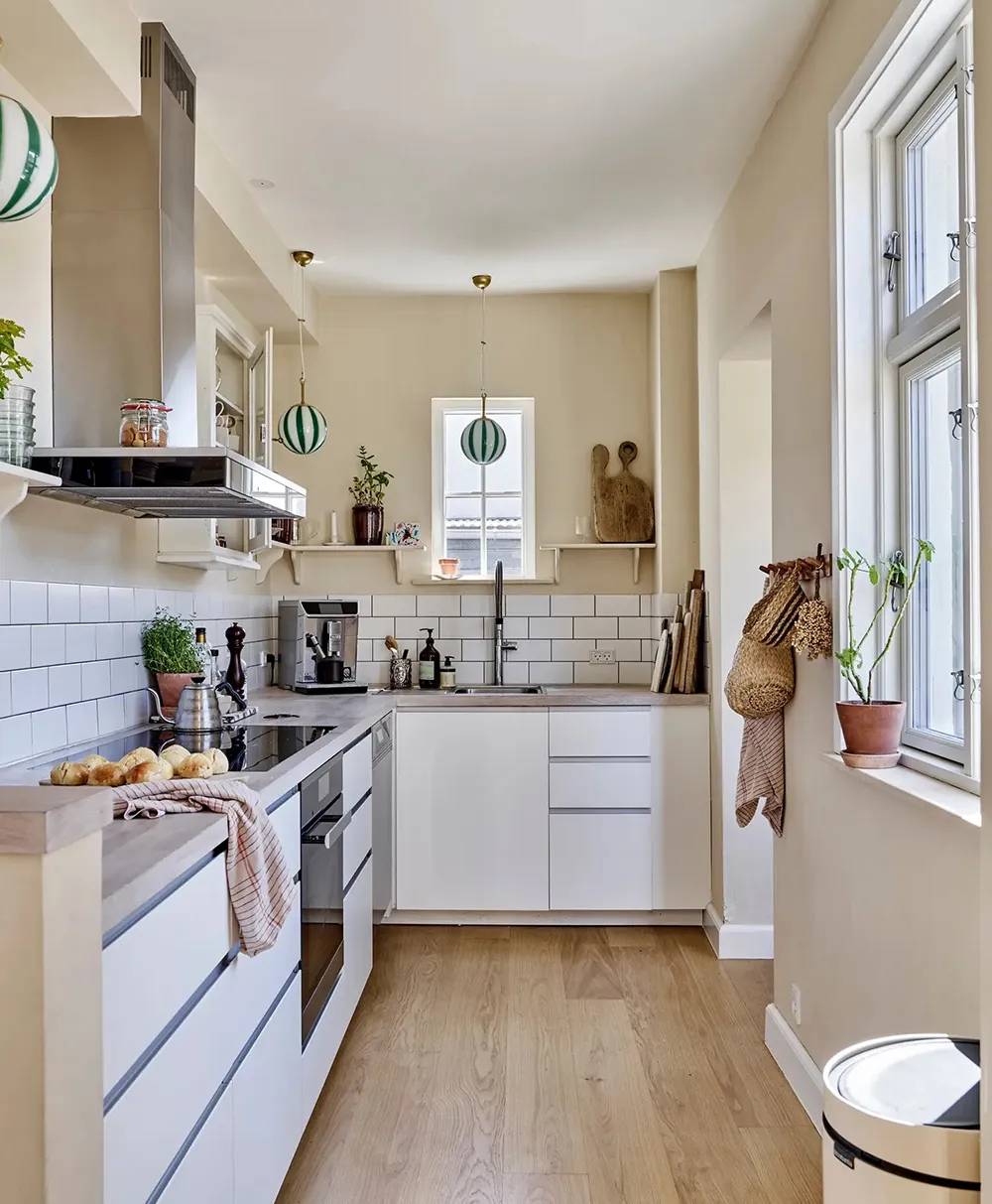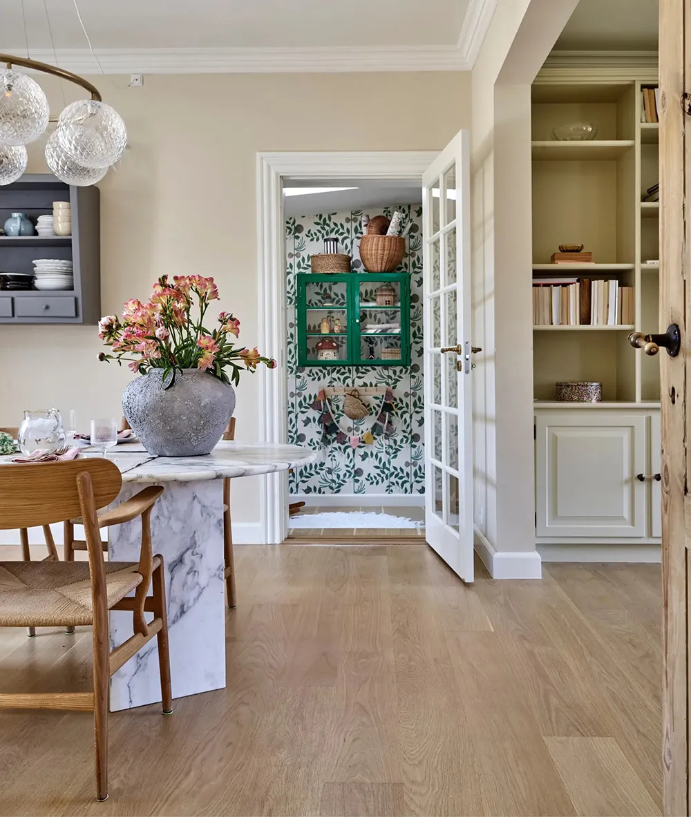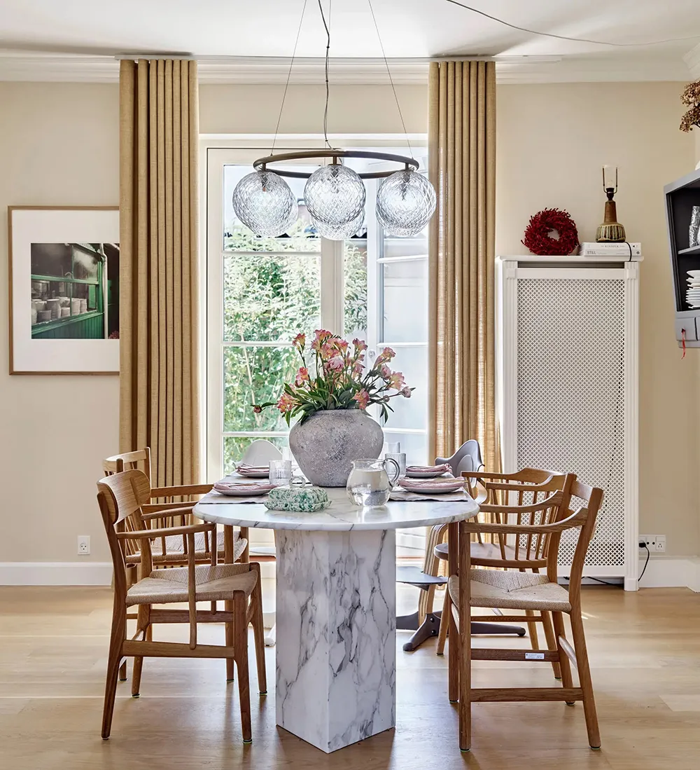 居心地の良いデンマークの田舎のコテージで、内装には上品なアクセントが施されています。