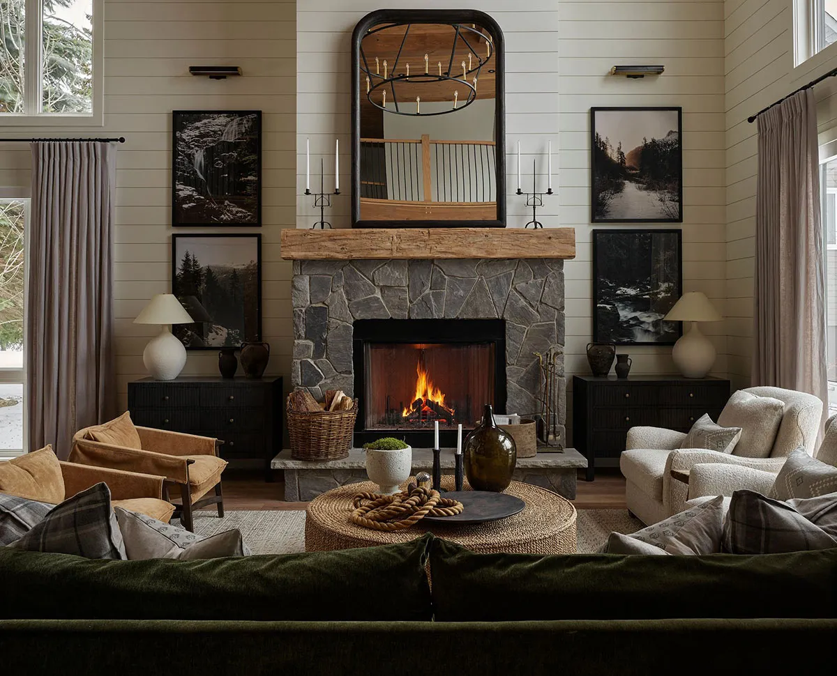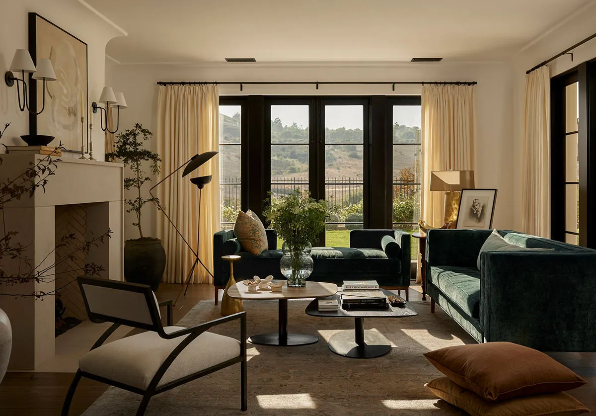 温かい室内と美しい影:カリフォルニアの居心地の良いコテージ