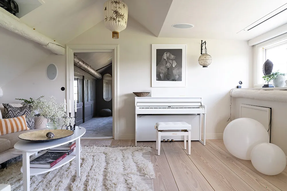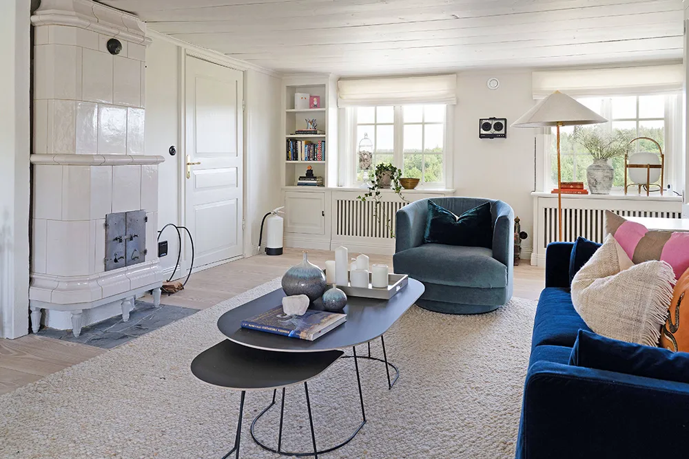 柔らかなモダンデザインとオープンなレイアウトを持つ、ストックホルムにあるユニークなアパートメント