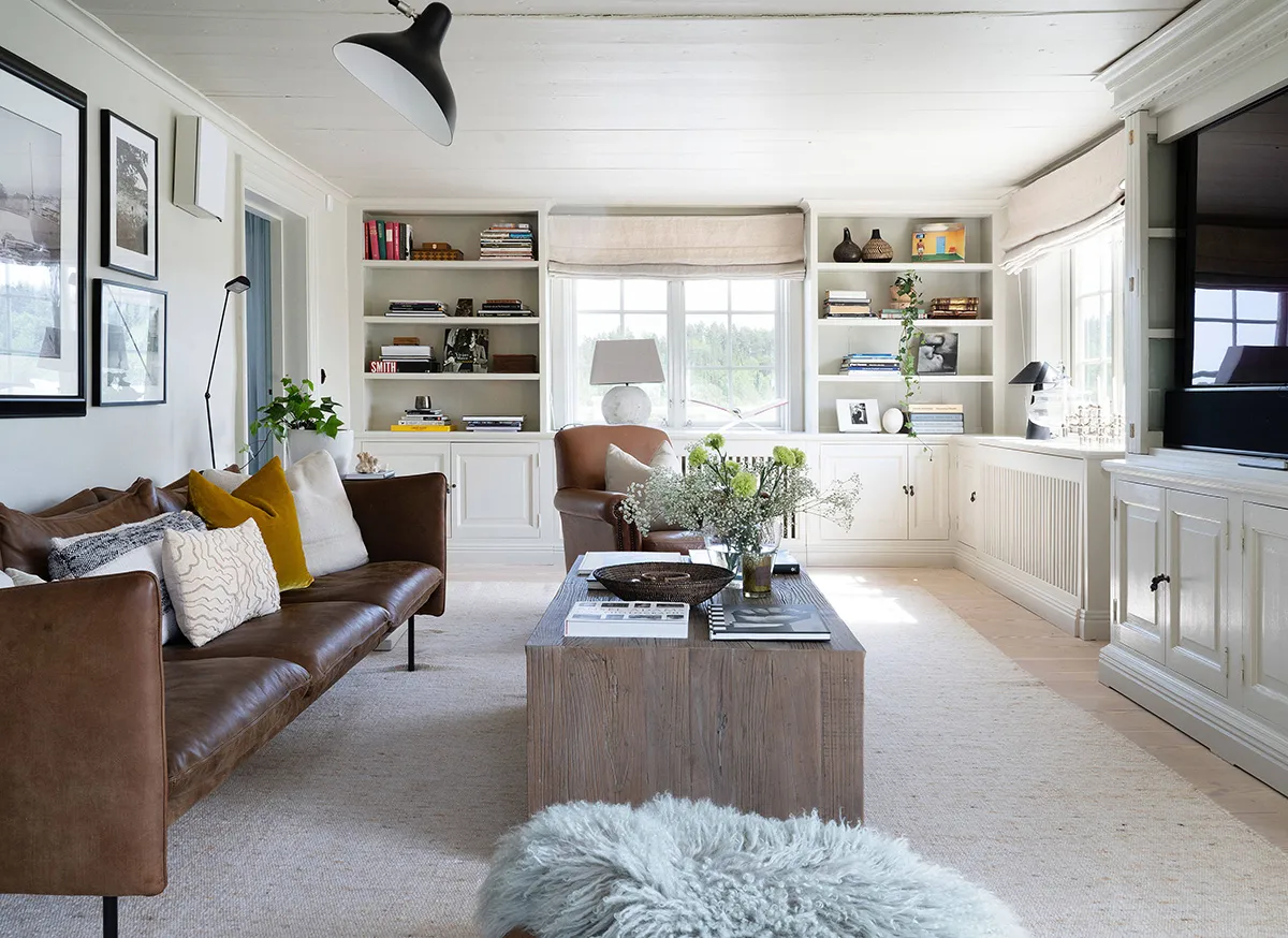 スウェーデンにある、テラスとプール付きの美しい黄色いヴィラ