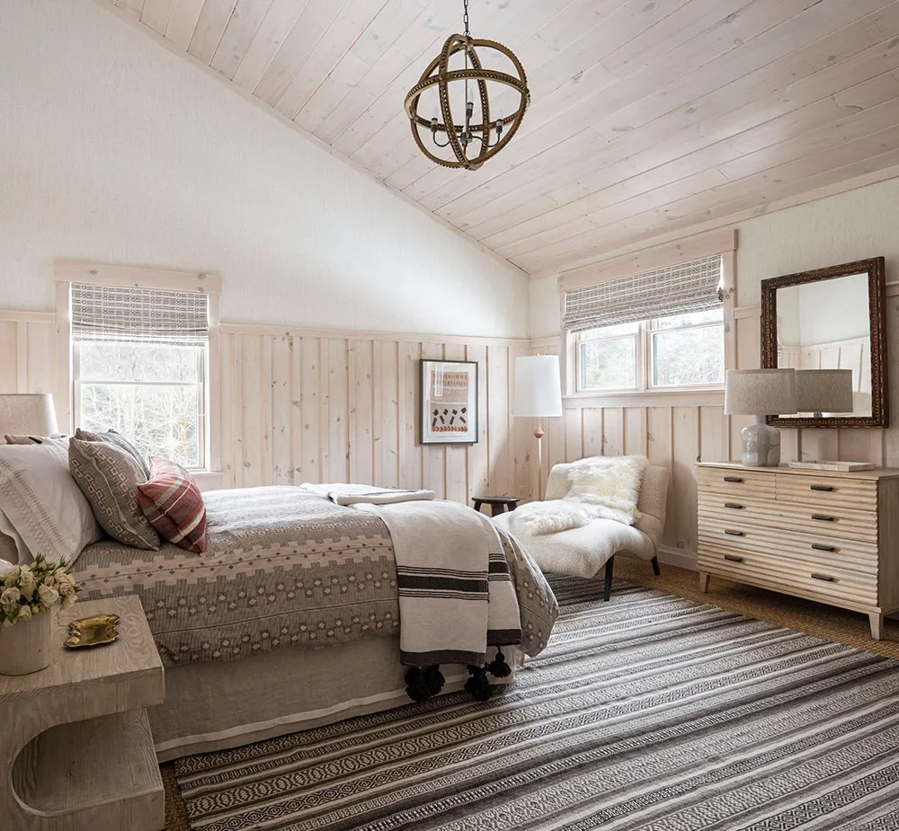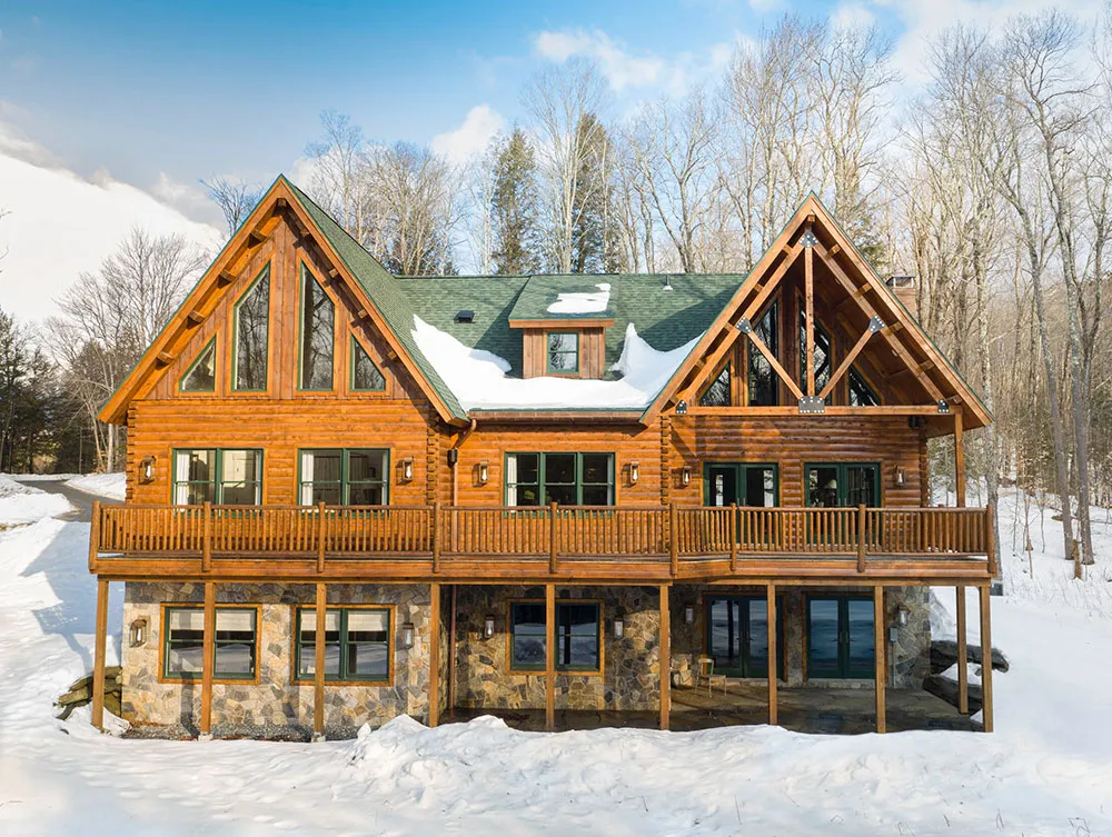 バーモント州のスキー場にある心地よい木造の家