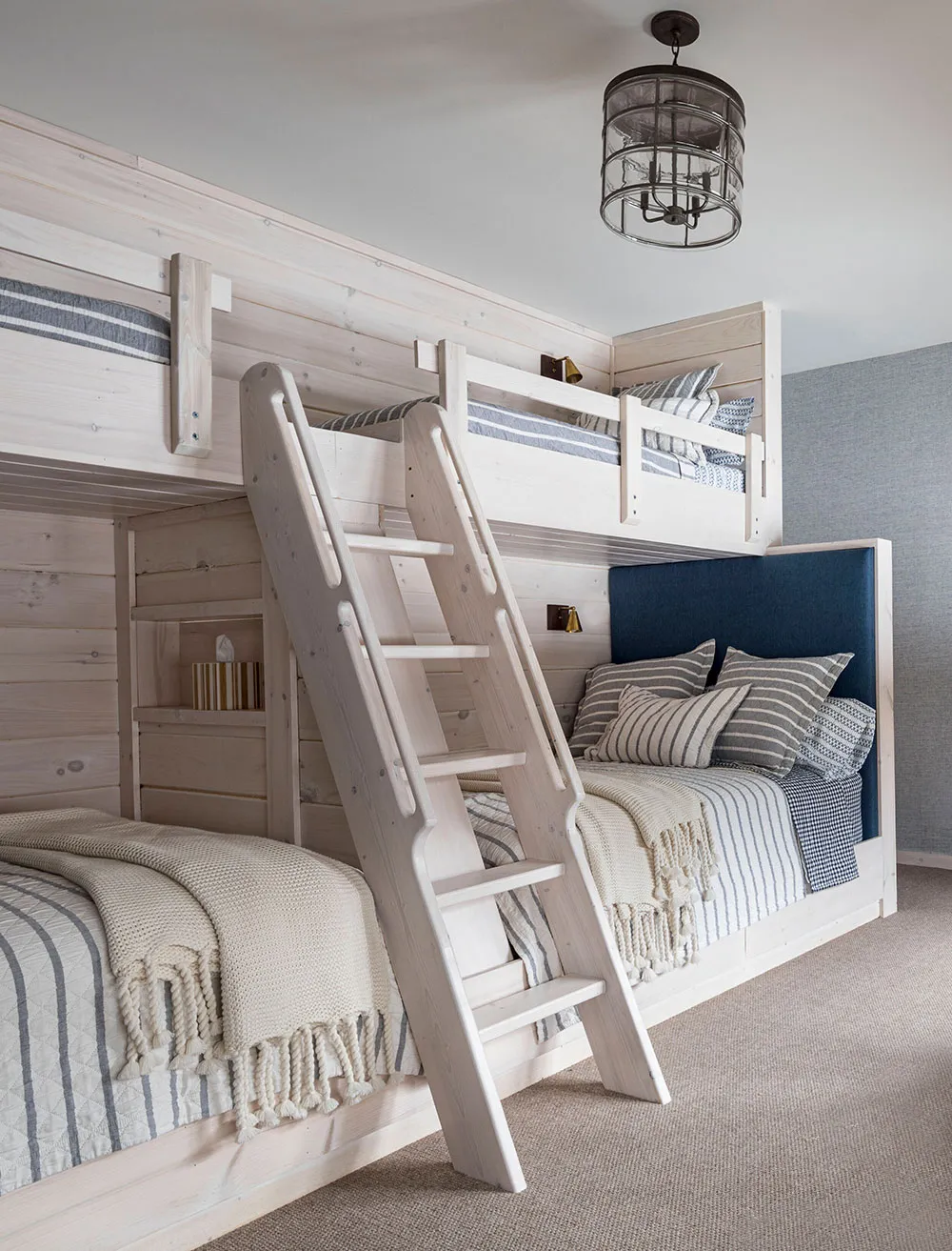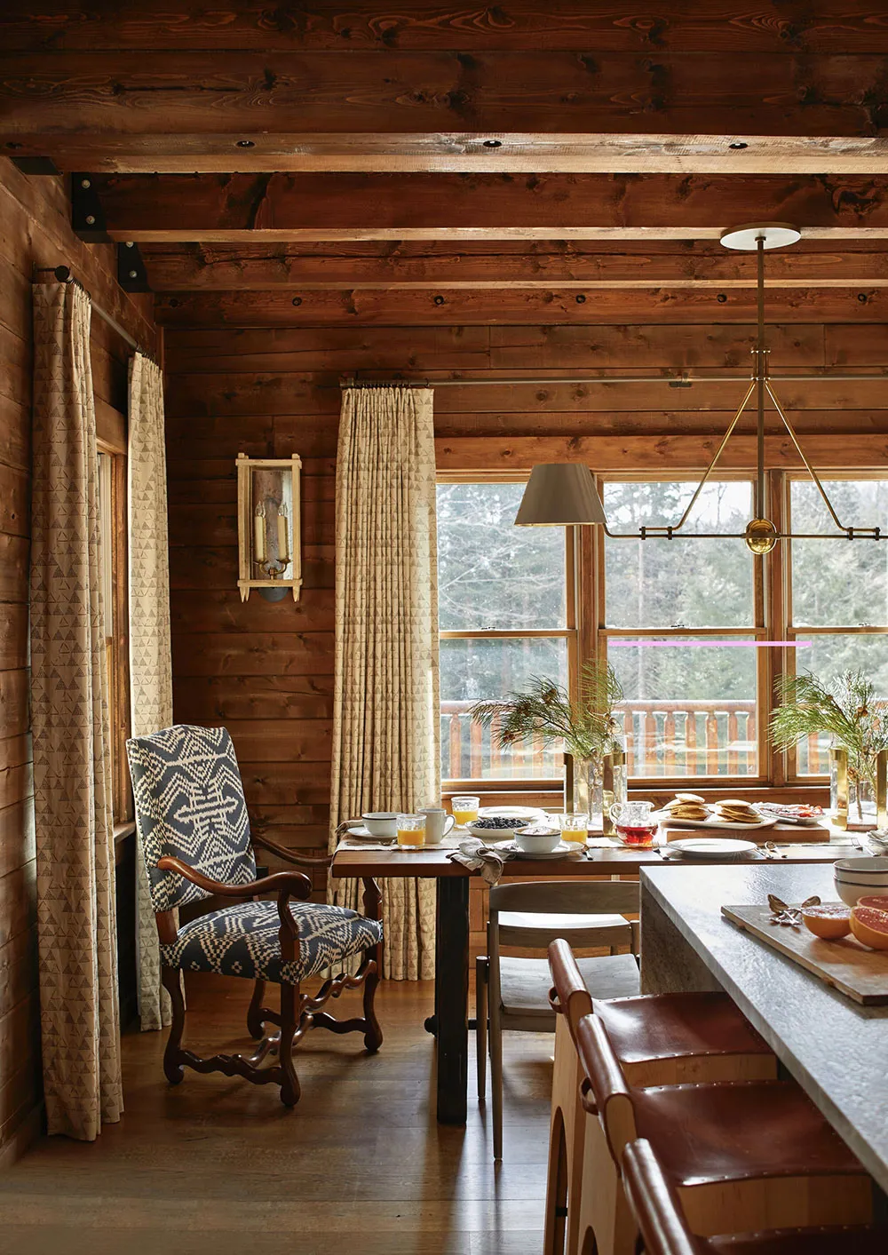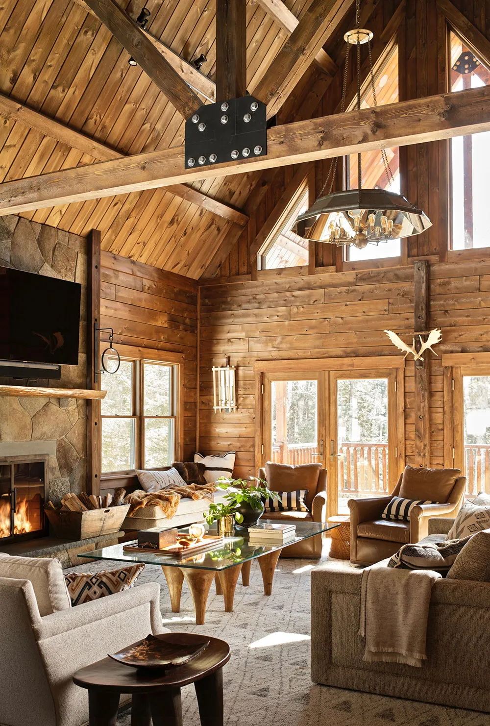 山の斜面にある美しいスカンジナビア風コテージで、インテリアもおしゃれです。