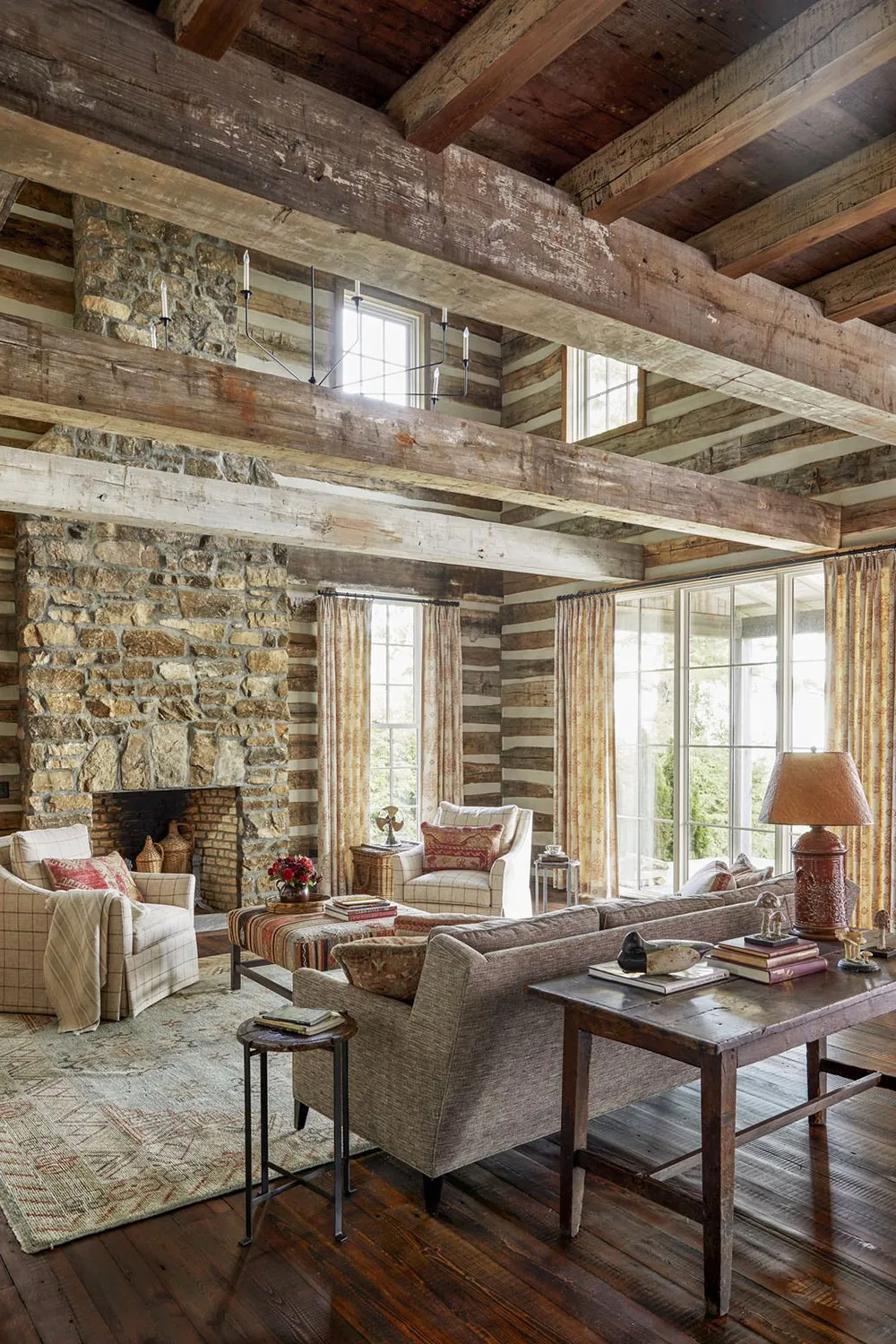 テキサス州におけるモダンなランチハウスデザインの中で見られる、落ち着いた優雅なカントリースタイル