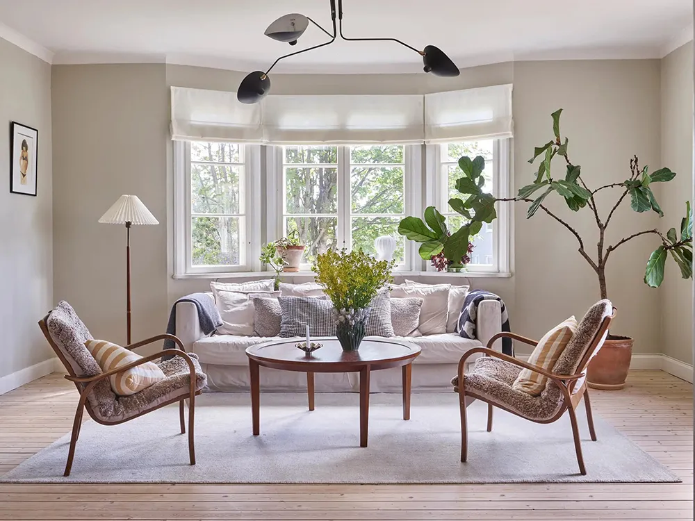 スウェーデンの田舎にある、居心地の良いミニマリストスタイルのインテリアを持つ家