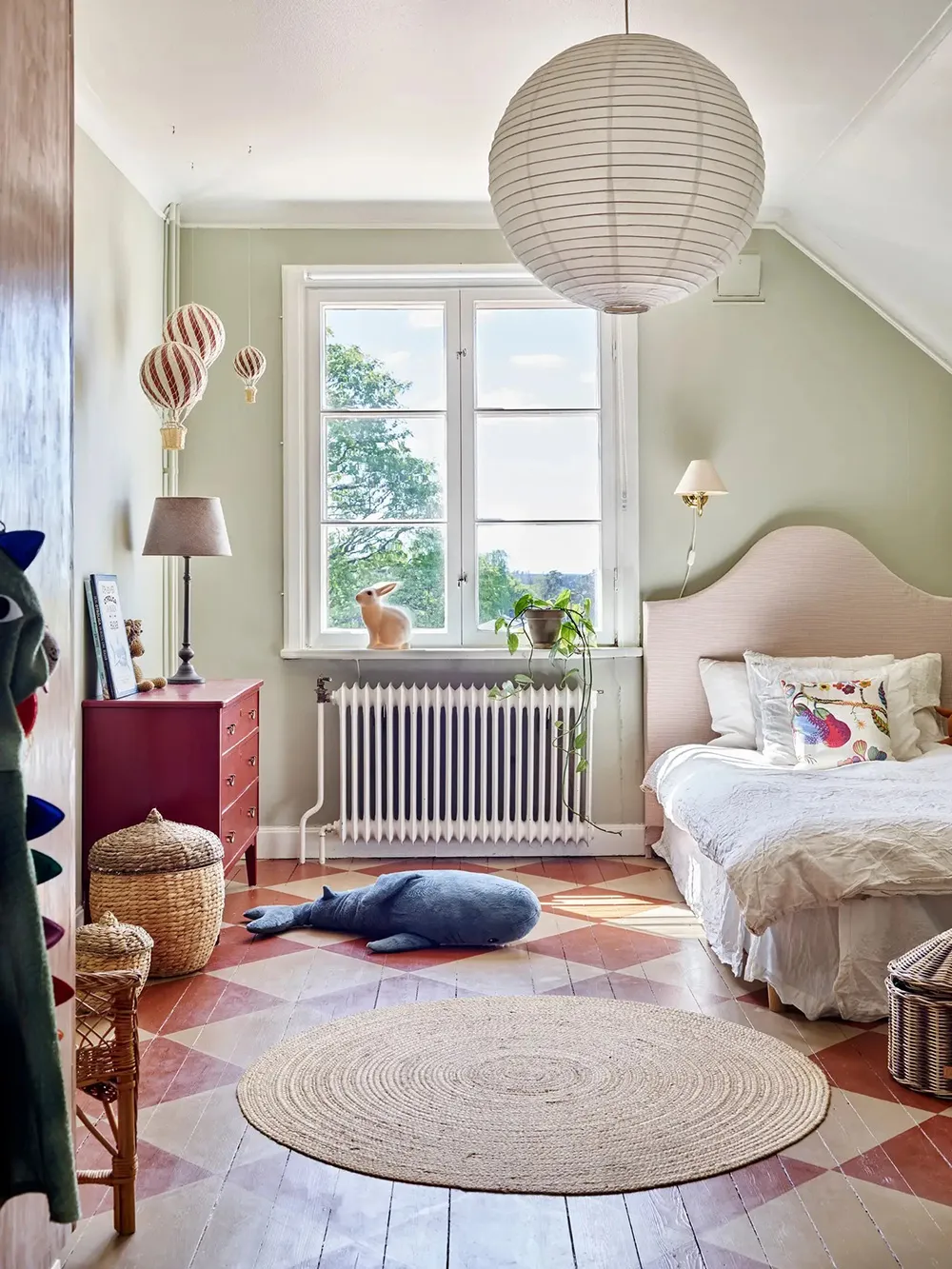 図書館と鮮やかな色彩パレット:ストックホルムの居心地の良いアパート(58平方メートル)