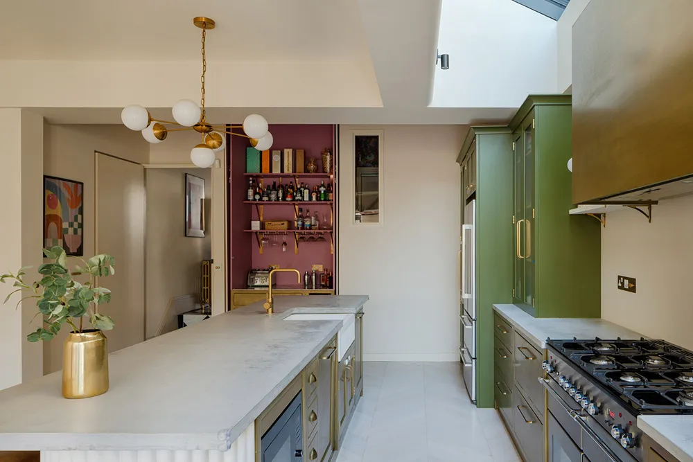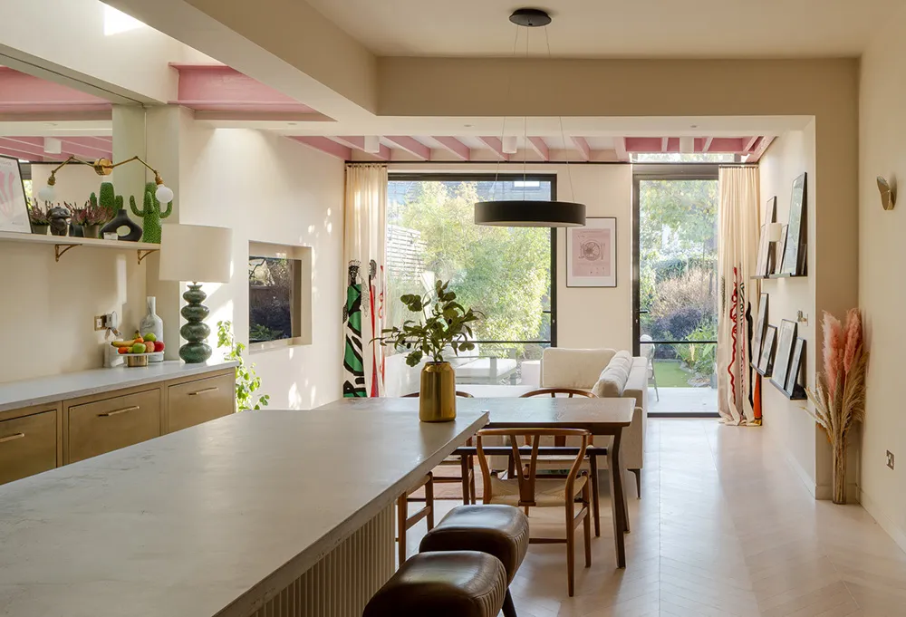ロンドンにある、エドワード朝風の鮮やかな室内装飾に現代的な要素が加えられた住宅