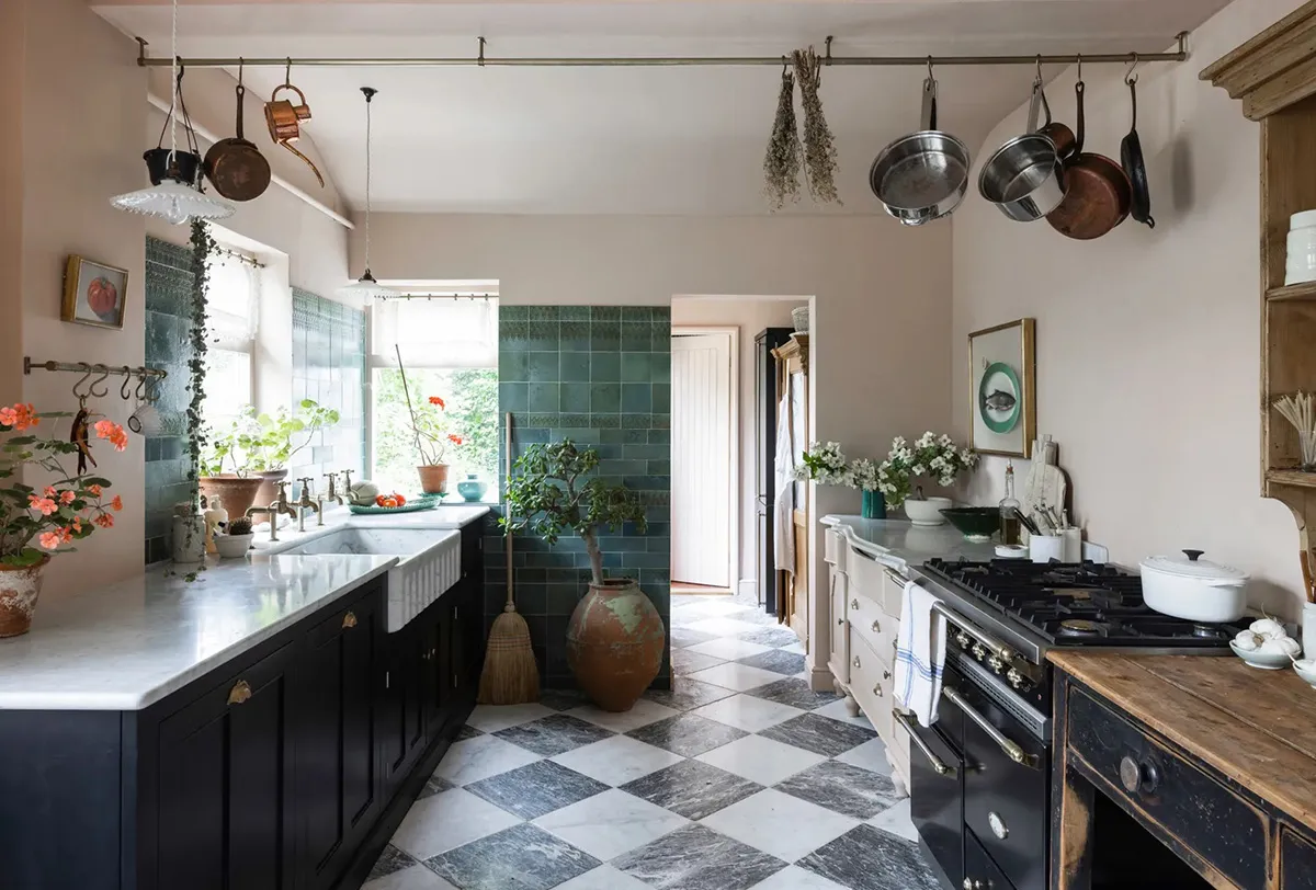 ヴィンテージなディテールが施された、魅力的なイギリス風カントリーキッチン