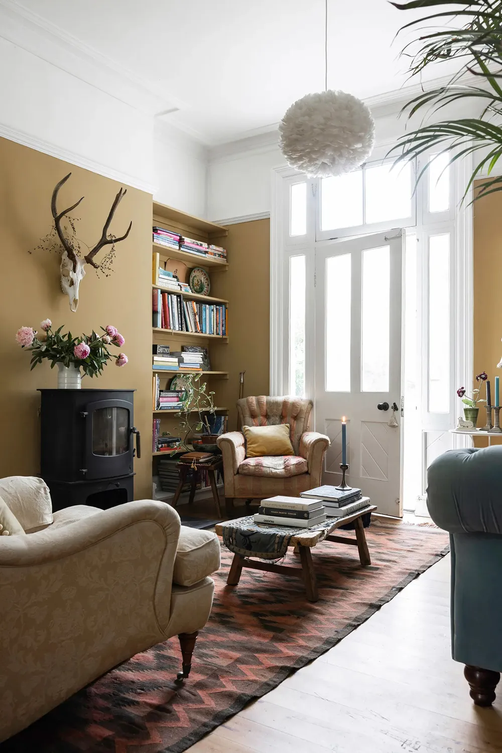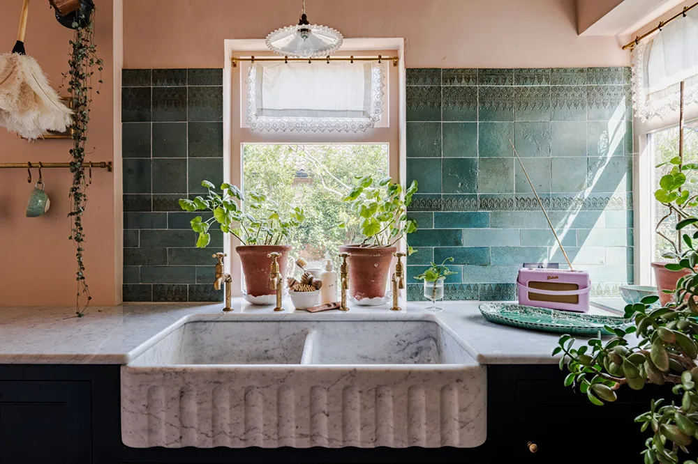 ロンドンにある素敵なタウンハウスのデザインには、美しいパステル調の色使いが取り入れられています。