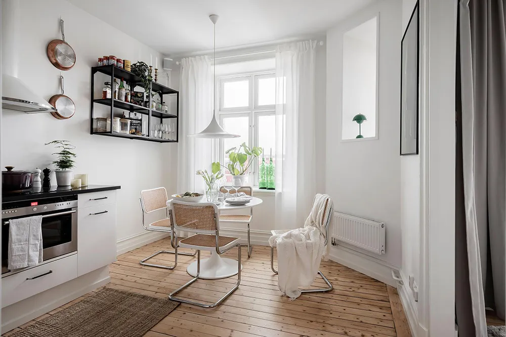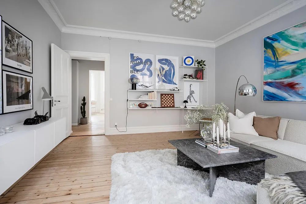 明るい壁装が特徴のホワイトスキャンディナビアンインテリア(61平方メートル)