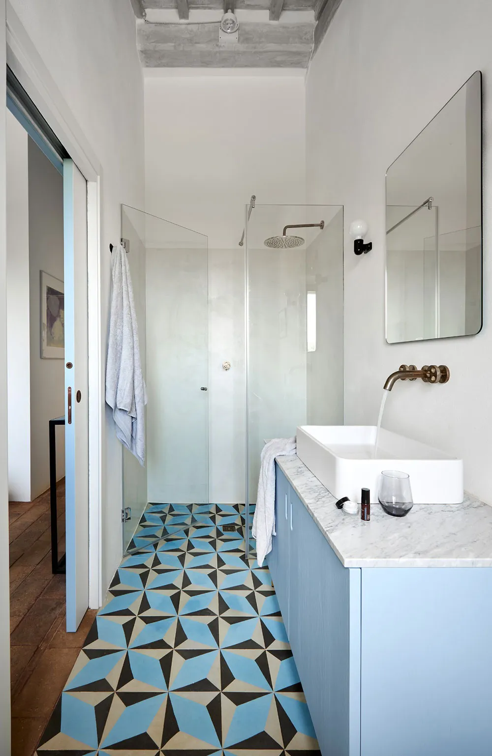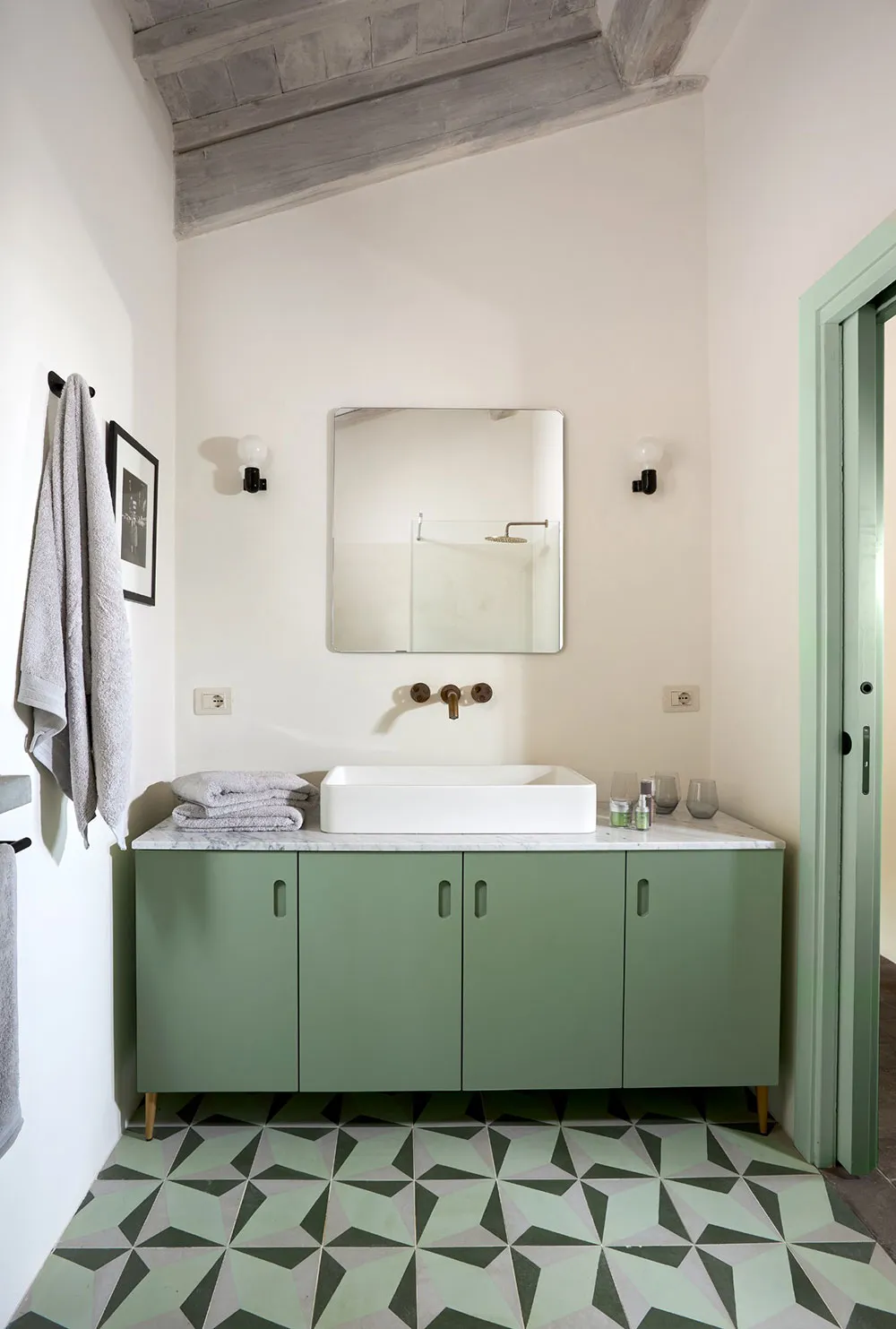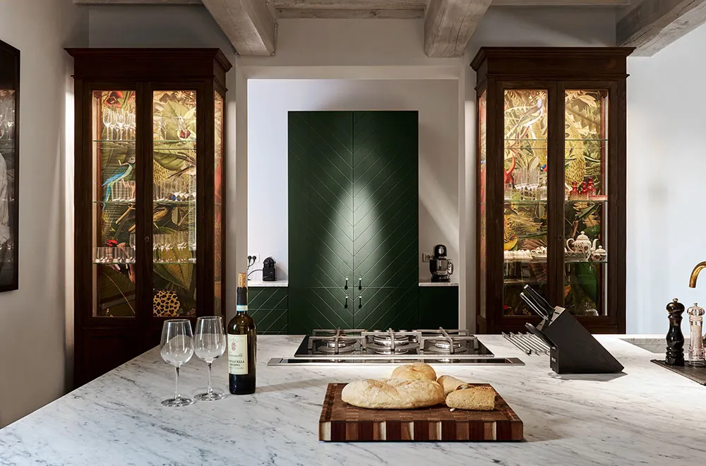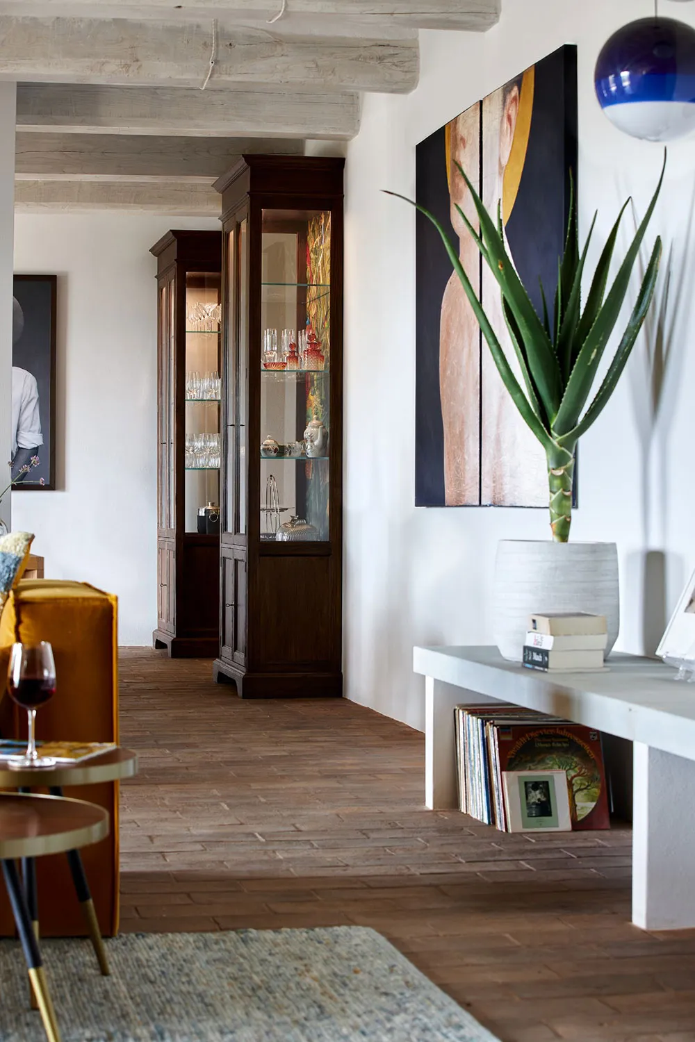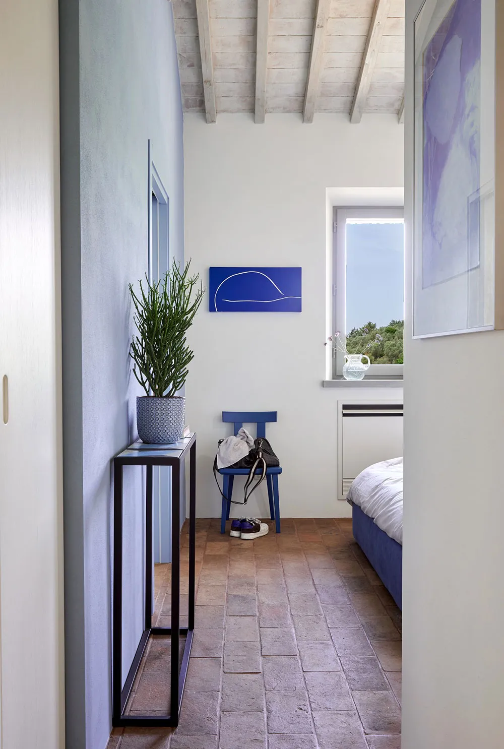 ウンブリア州にある歴史的な石造りのヴィラの、鮮やかでモダンなインテリア