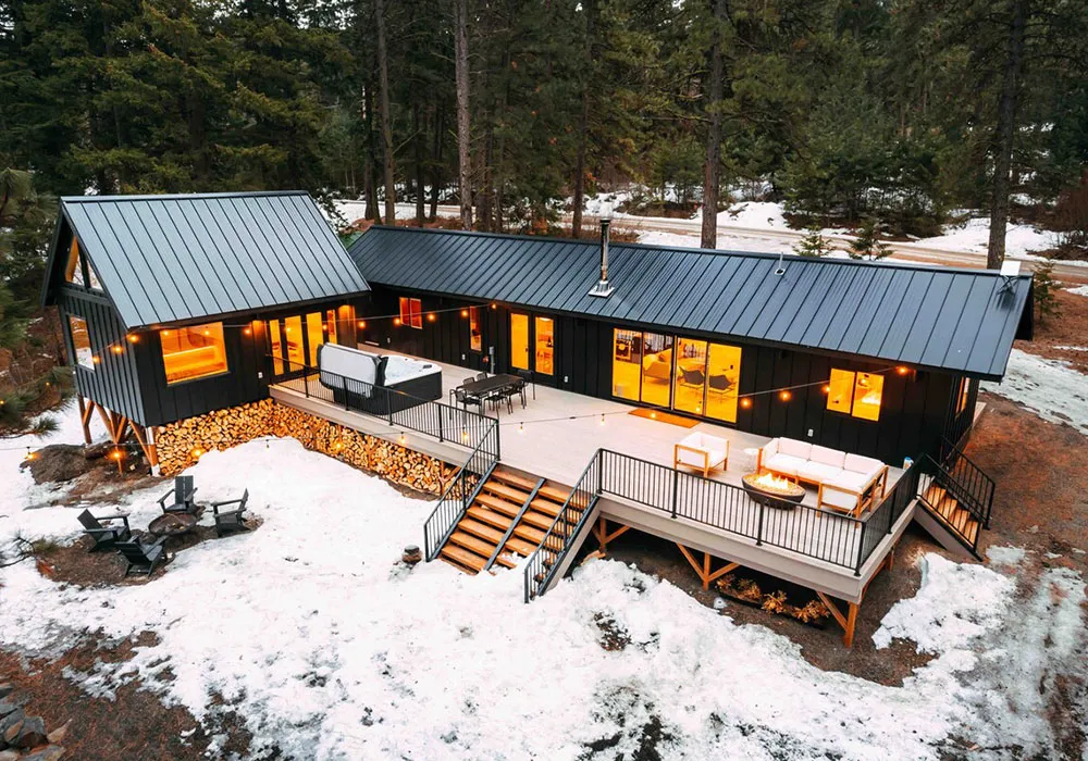 週末レンタル用のモダンな森林小屋があります。