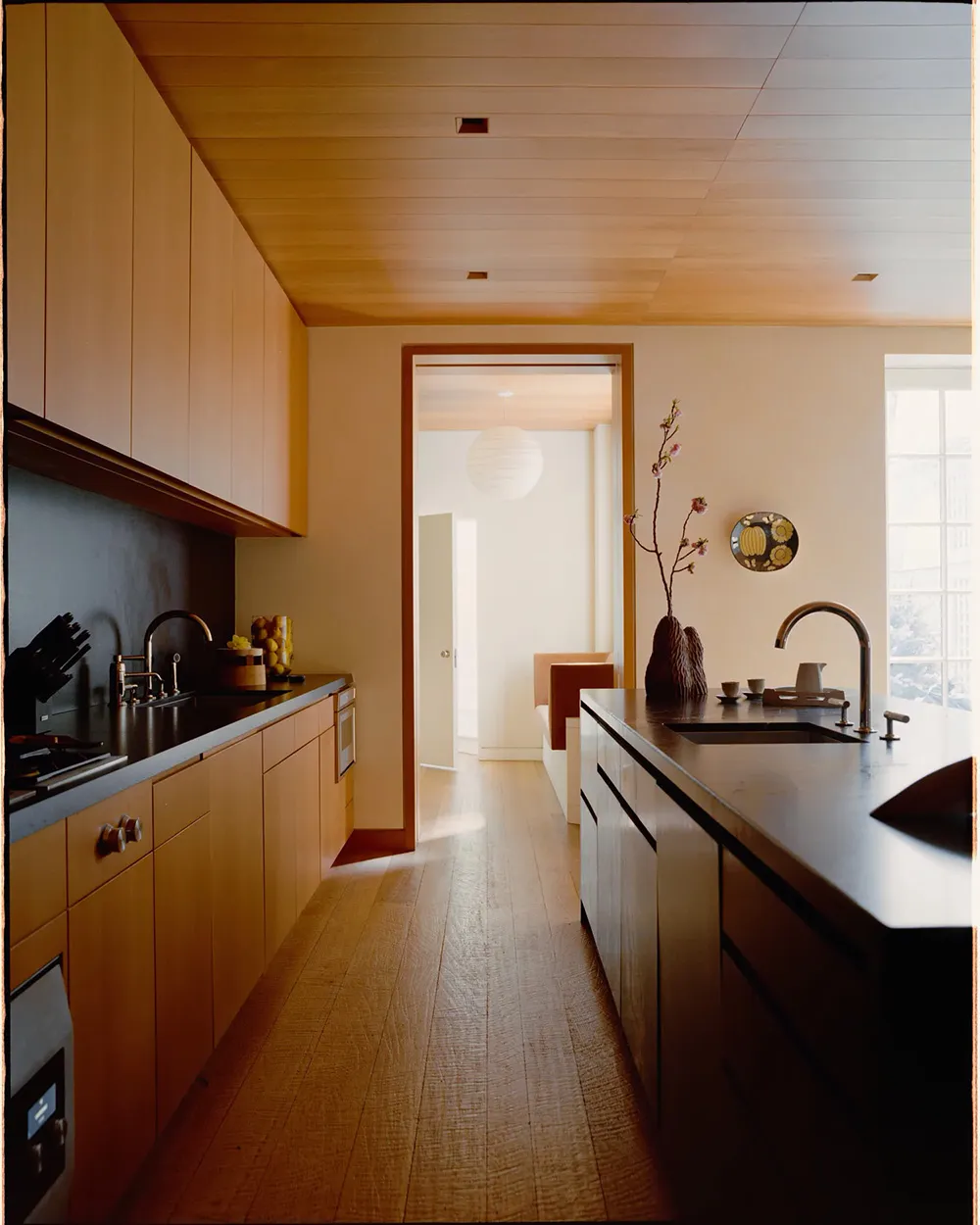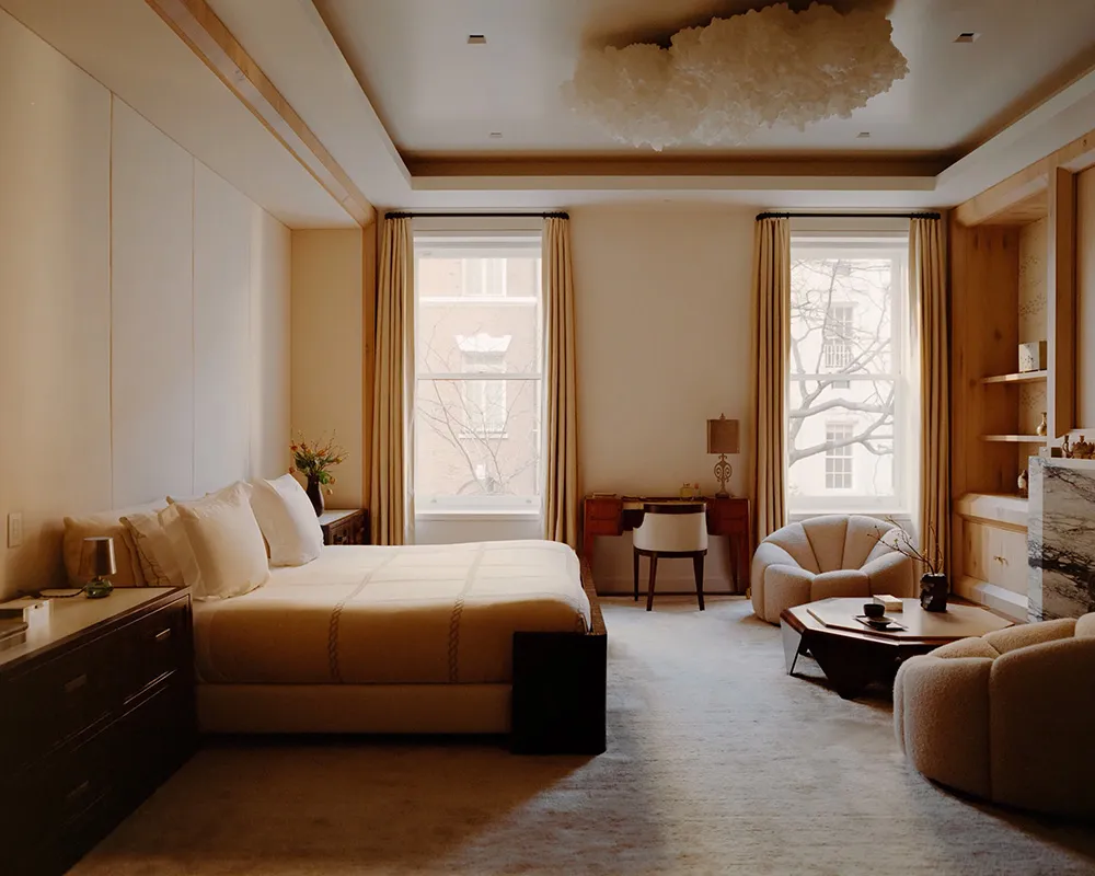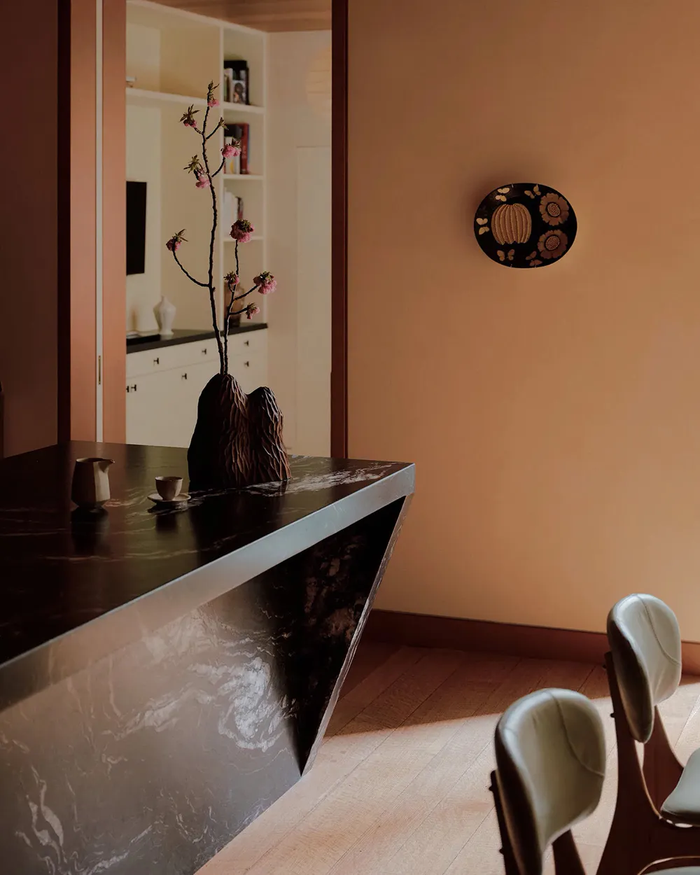 マンハッタンにあるこれらのモダンなアパートメントの洗練された内装からは、いくつかの異なるスタイルの影響が見て取れます。